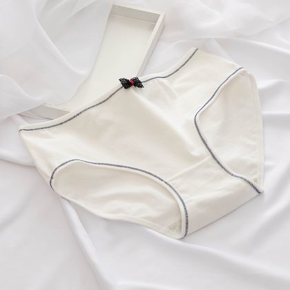 New product! Bow Japanese style Morandi simple girl’s cotton crotch Women’s Mid-waist sweet student briefs