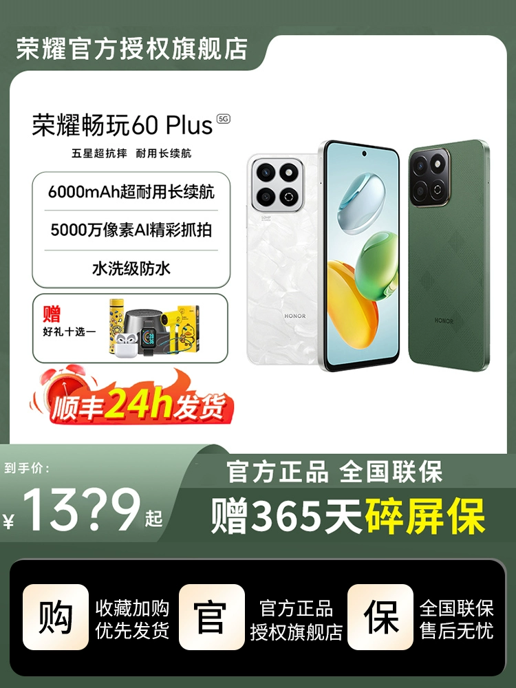 | nameOriginal | [New product launch] HONOR/Glory Play 60 Plus 5G new smartphone 6000mAh long battery life ultra-clear image official flagship business game camera student mobile phone |