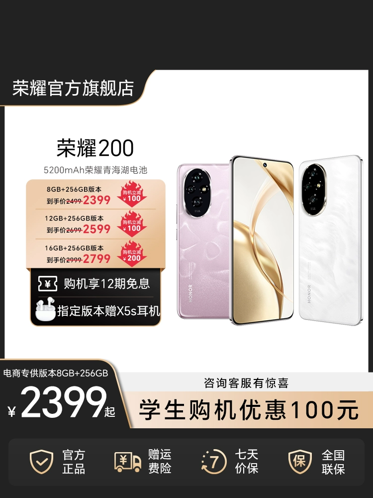 | nameOriginal | [New product launch] HONOR/Honor 200 5G mobile phone 5200mAh Qinghai Lake battery/50 million triple main camera photo camera/Honor Oasis eye protection screen official flagship store 100 |