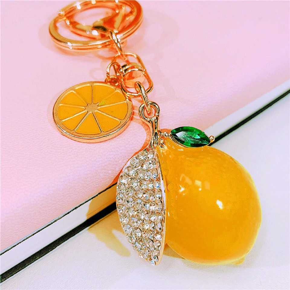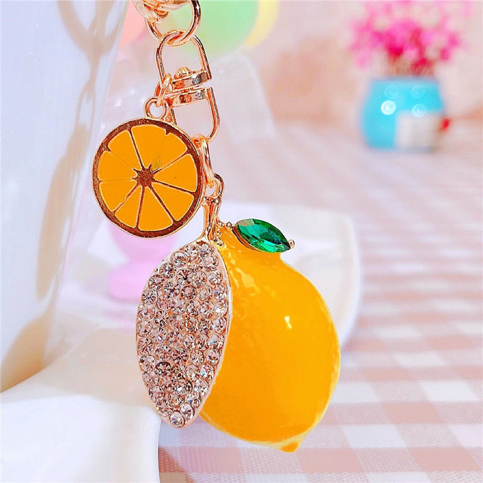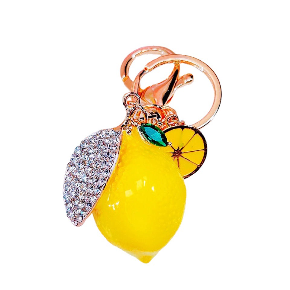 | nameOriginal | New product simulation fruit lemon key metal diamond painting oil cute bag pendant car key chain ring gift |