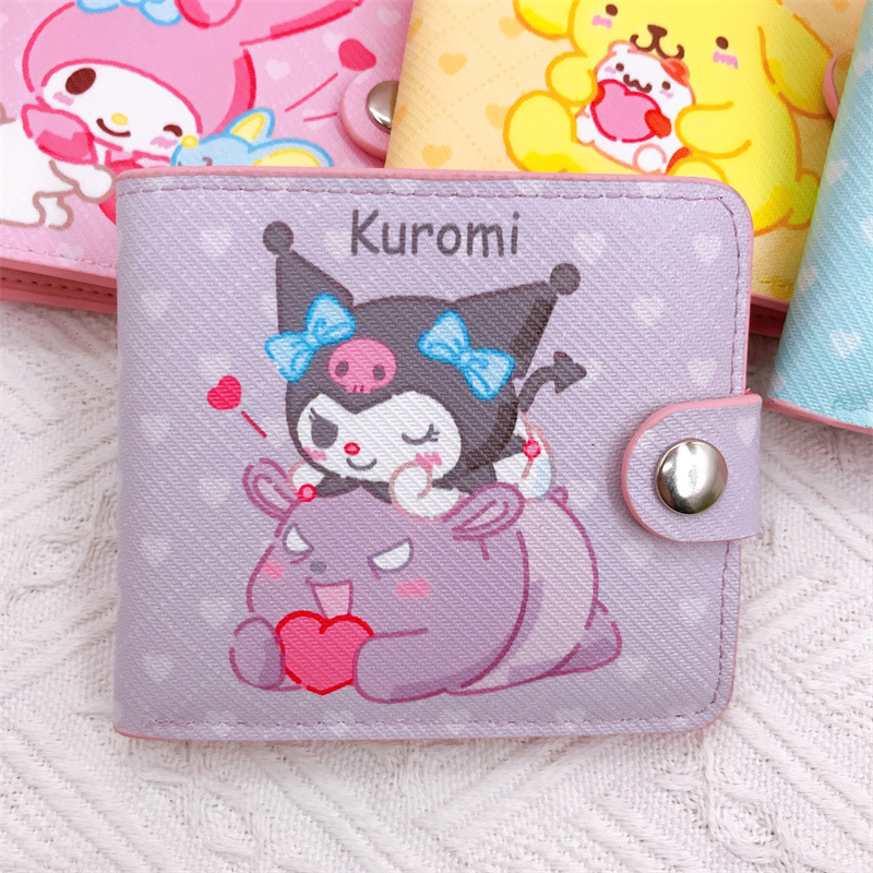 New PU Casual Short 2-fold Wallet for Primary and Secondary School Students Children Afraid of Dog Kurumi with Button Card Holder Wallet