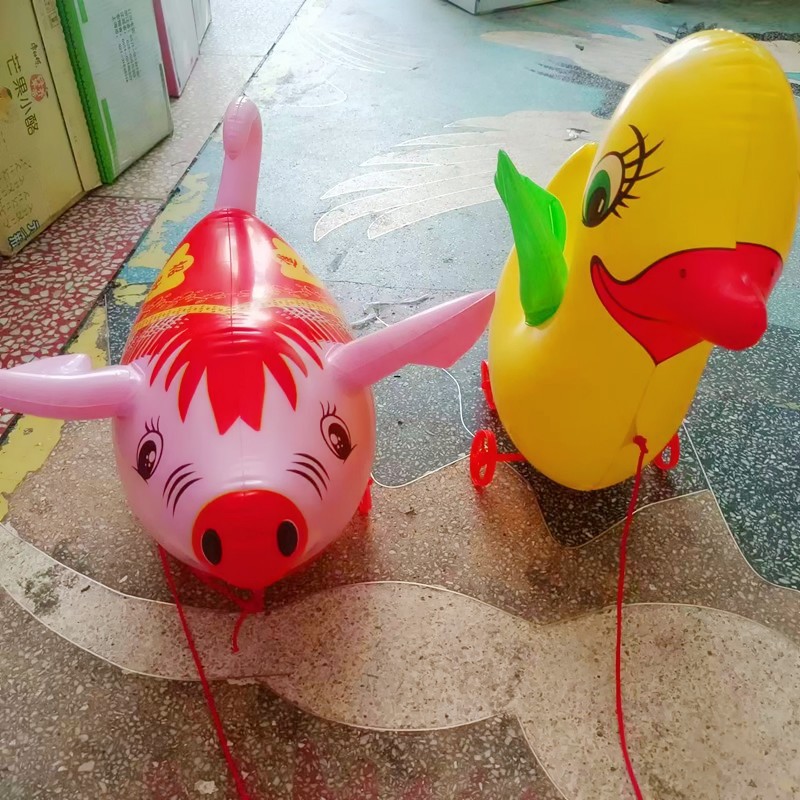 | nameOriginal | New pull car children's toys cartoon inflatable stall supply PVC animal with wheels pull wire pig inflatable toys |