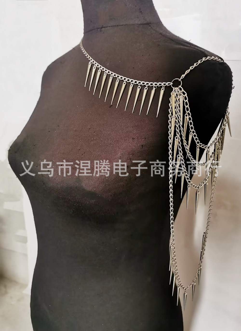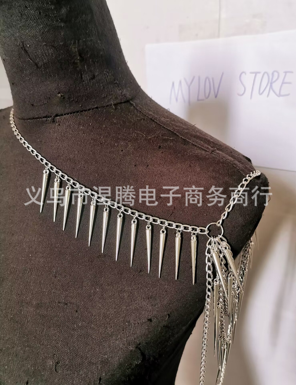 | nameOriginal | New Punk Fashion Metal Rivet Single Shoulder Necklace European and American Cross-border Popular Body Chain |