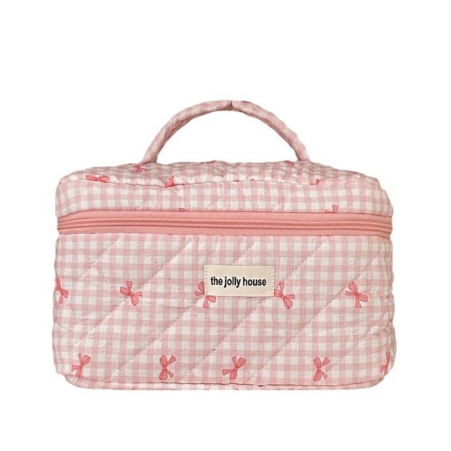 | nameOriginal | New Quilted Bow Makeup Bag Large Capacity Check Makeup Bag Ins Style High Color Value Portable Storage Bag |