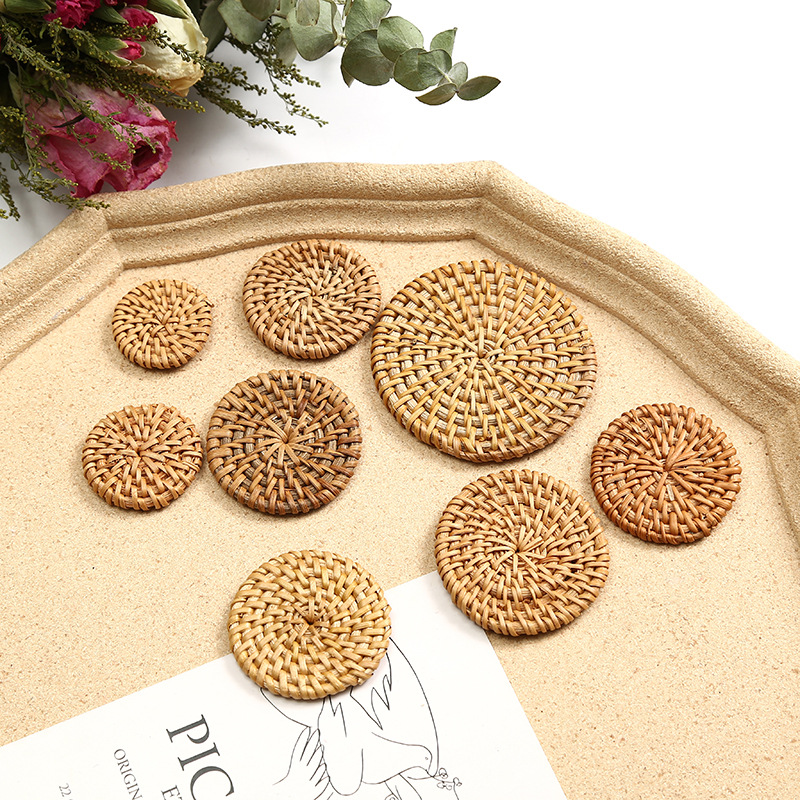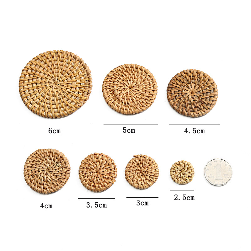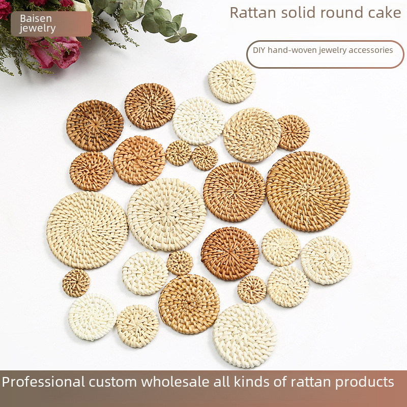New rattan round cake woven solid round cake straw woven DIY handmade bohemian style earrings jewelry accessories
