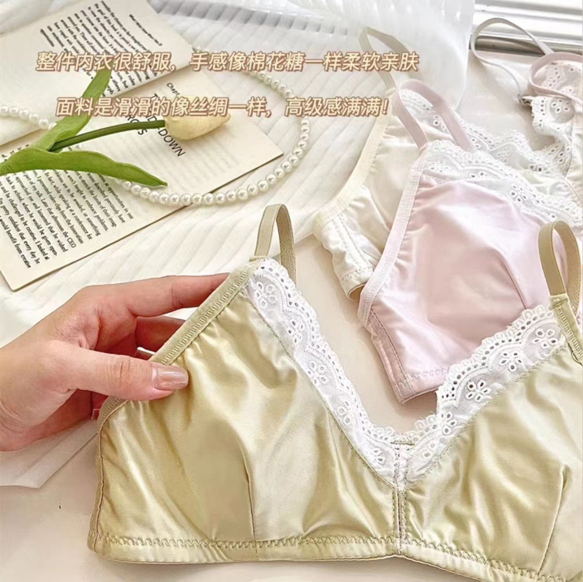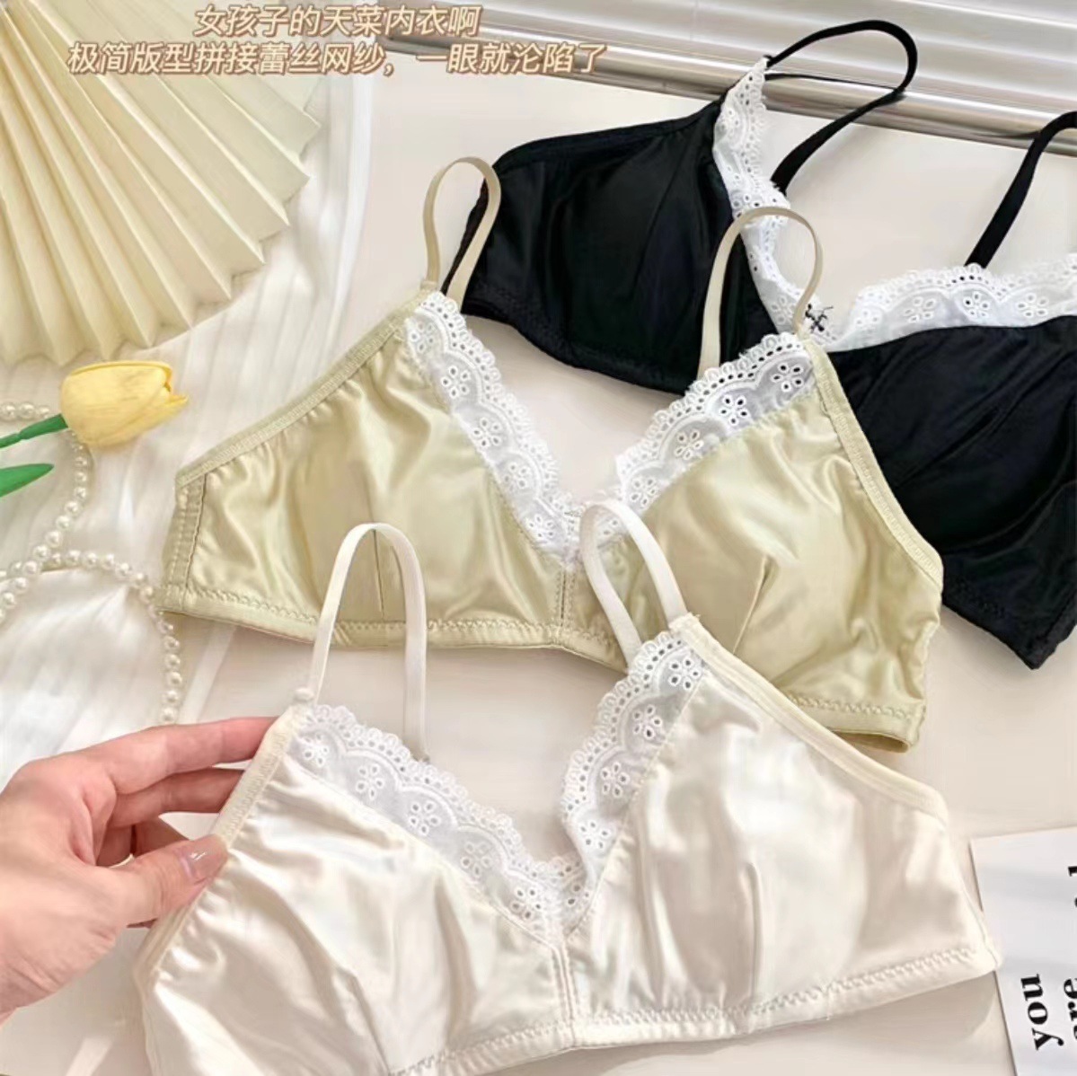 New recommend lace high school student French triangle cup underwear women’s seamless wireless glossy comfortable bra