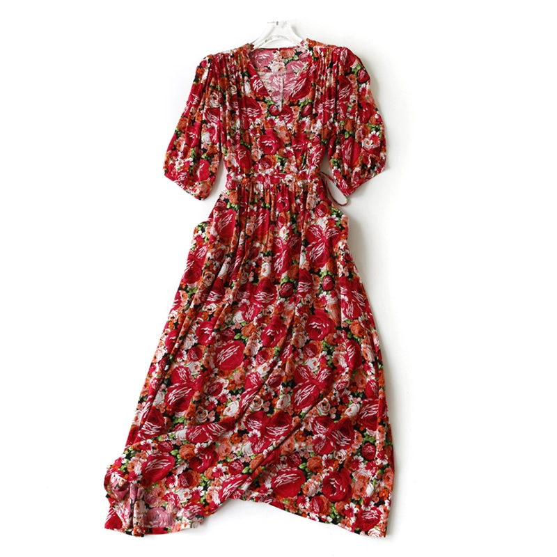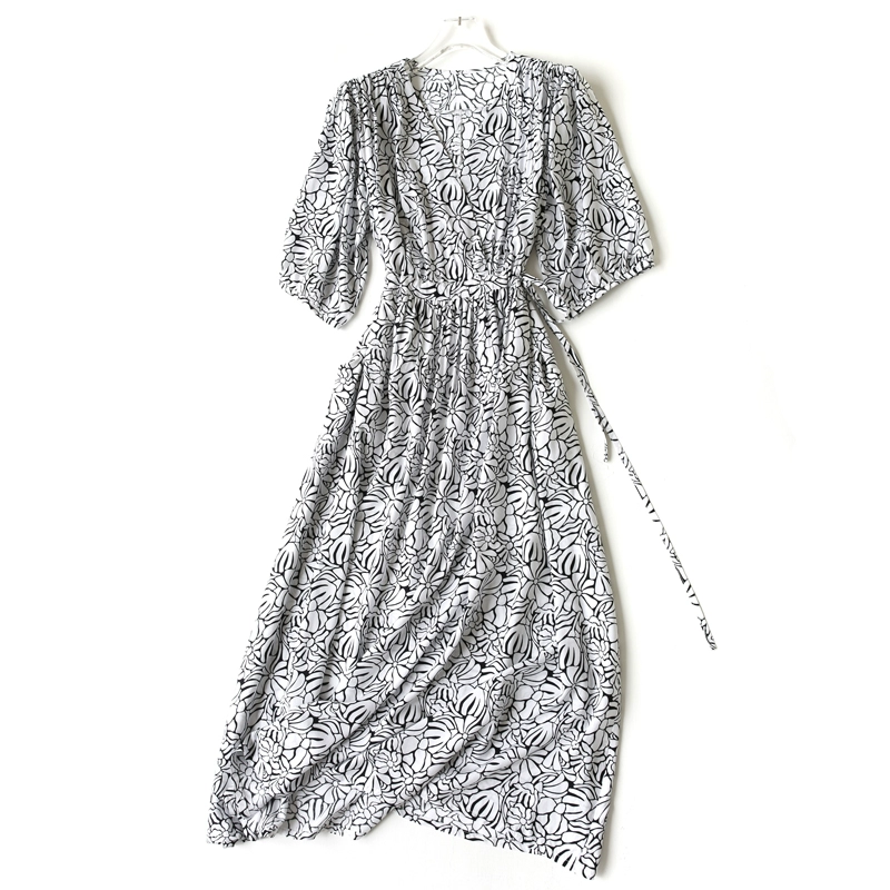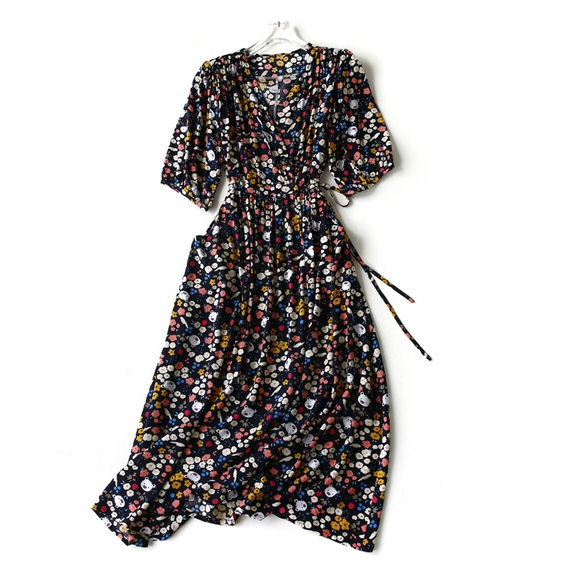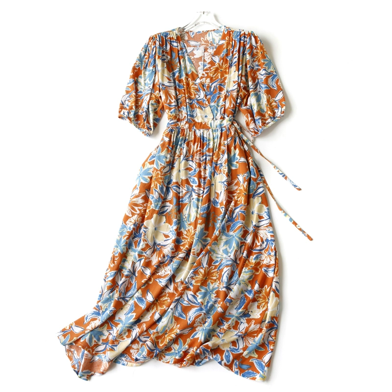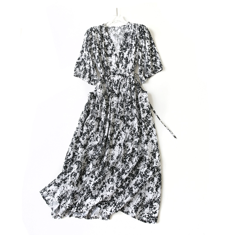 | nameOriginal | New resort style slim v-neck cotton silk dress |
