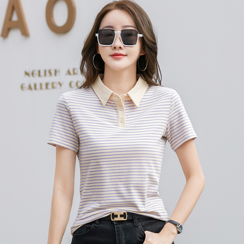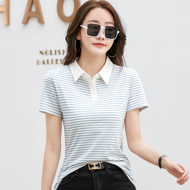 | nameOriginal | New Retro Contrast Color Striped T-shirt Age-reducing Korean-style POLO Collar Short-sleeved Women's Fashion Elegant Summer Slim-fit Trendy |