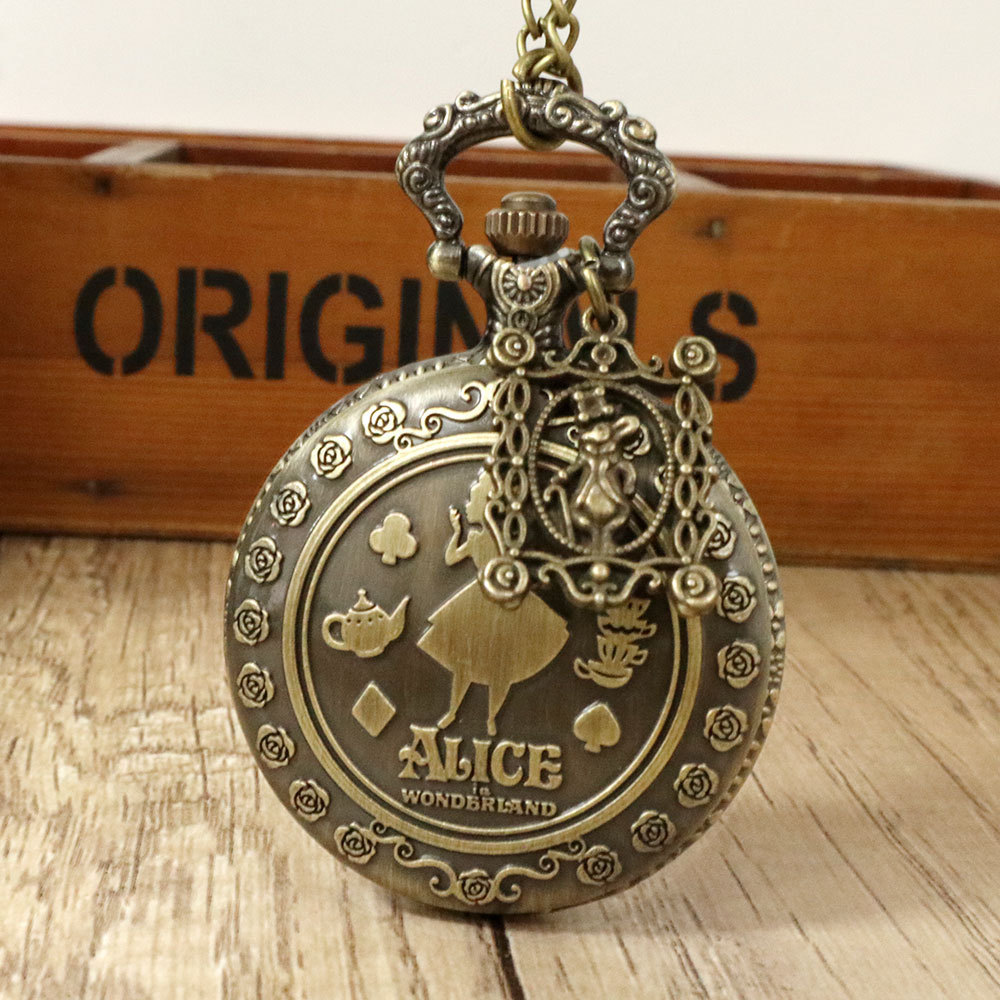| nameOriginal | New retro double-sided exquisite embossed Alice pocket watch plus many cartoon accessories large pocket watch wholesale |