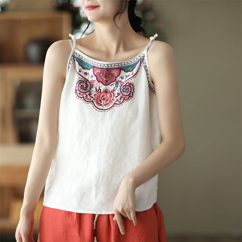 | nameOriginal | New retro ethnic style embroidered cotton and linen small strap thin shoulder strap outer wear inner base top summer |