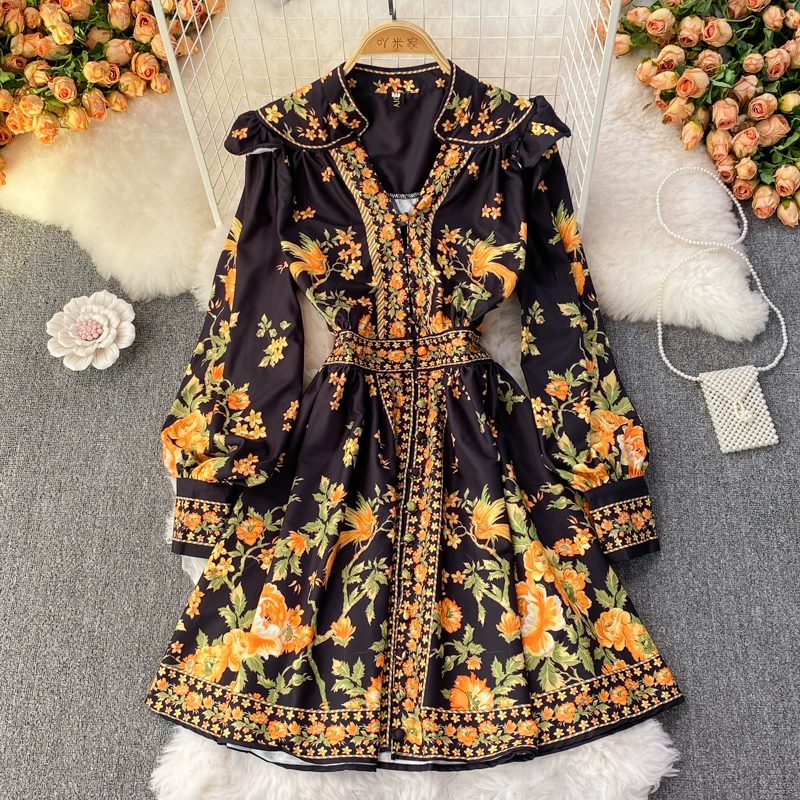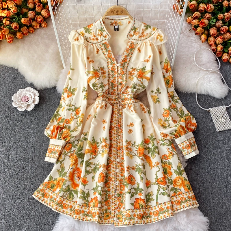 New retro style single breasted lantern sleeve dress