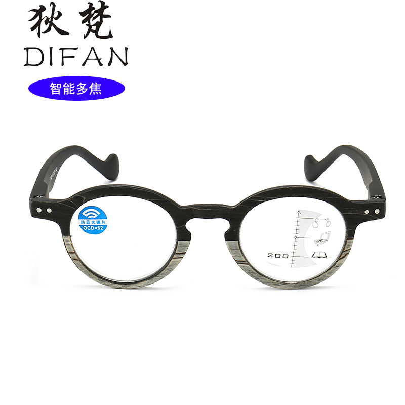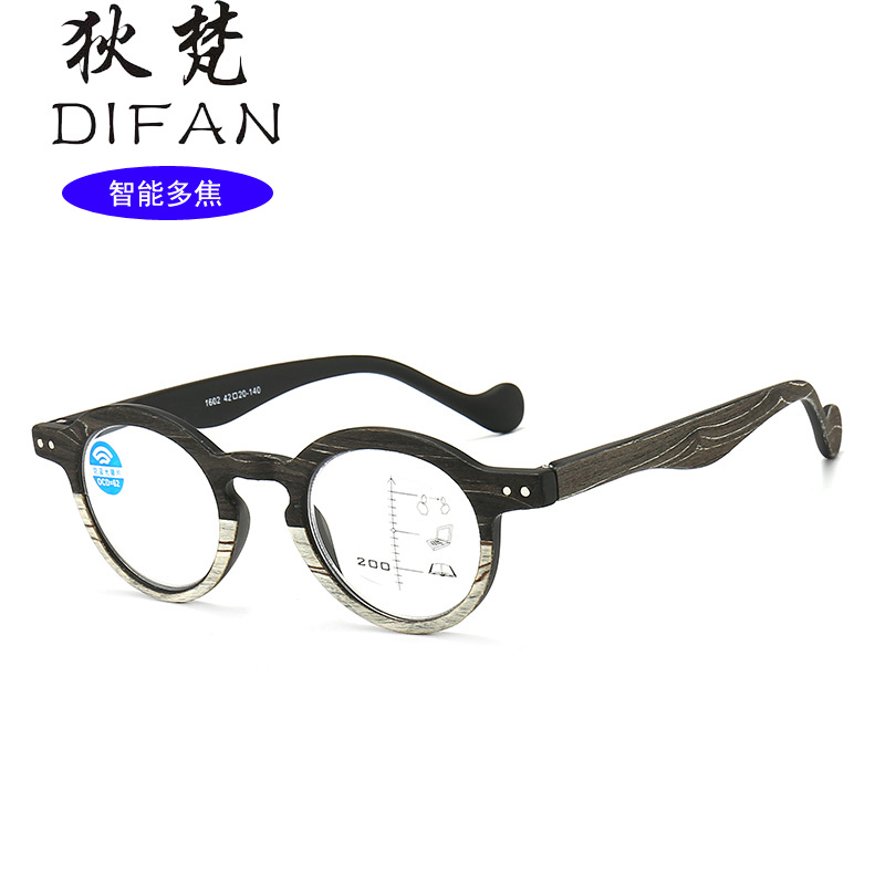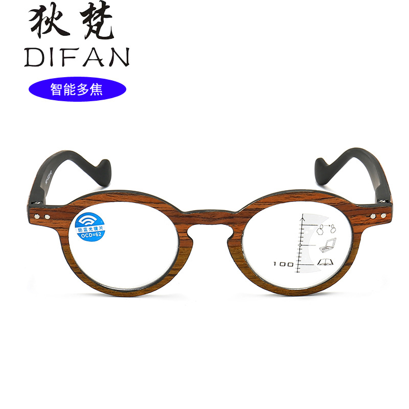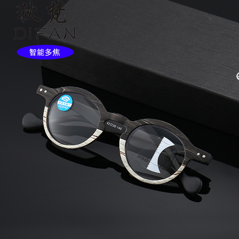 New Retro Wood Grain Inner Progressive Multi-focus Presbyopia Glasses for Men and Women Anti-blue Light HD Far and Near Smart Zoom Glasses