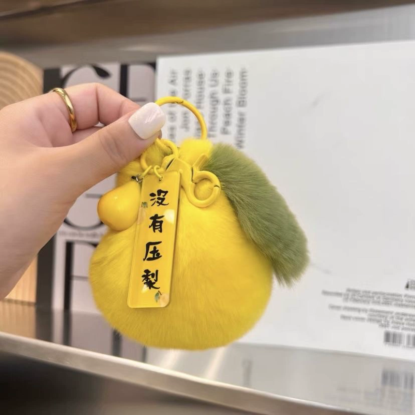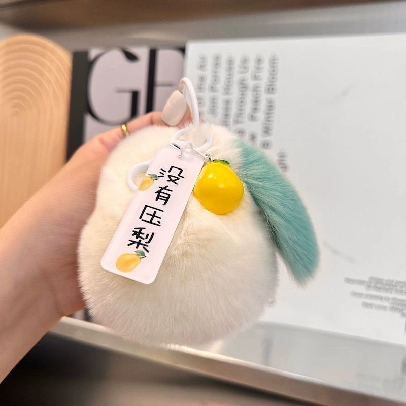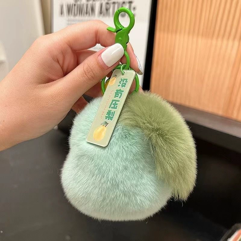 | nameOriginal | New Rex Rabbit Fur Pressed Pear Niche Car Keychain |