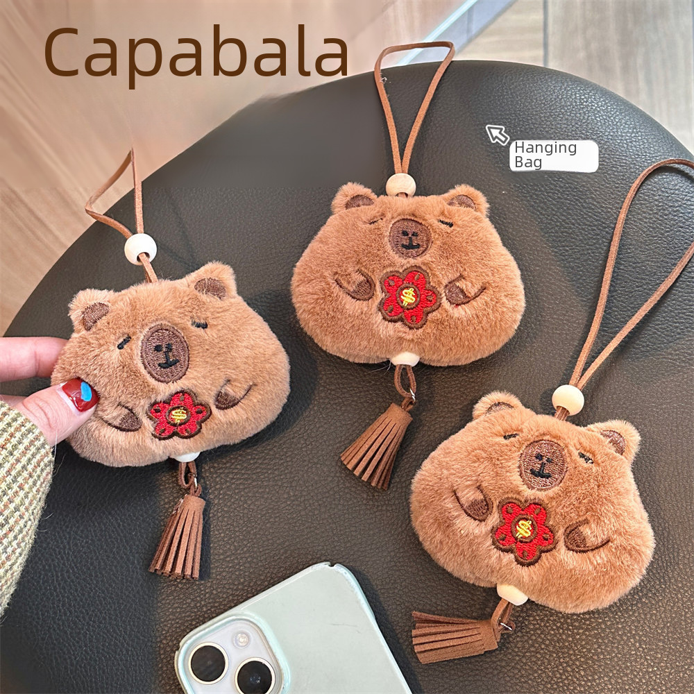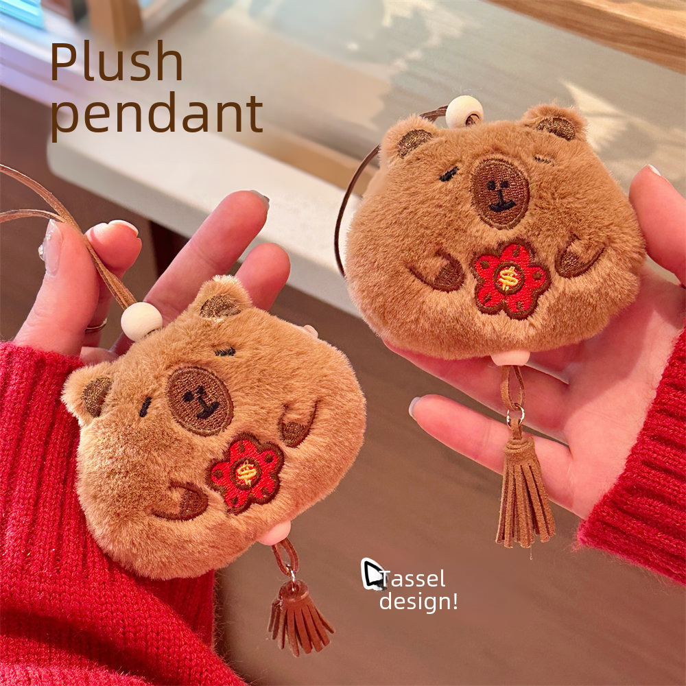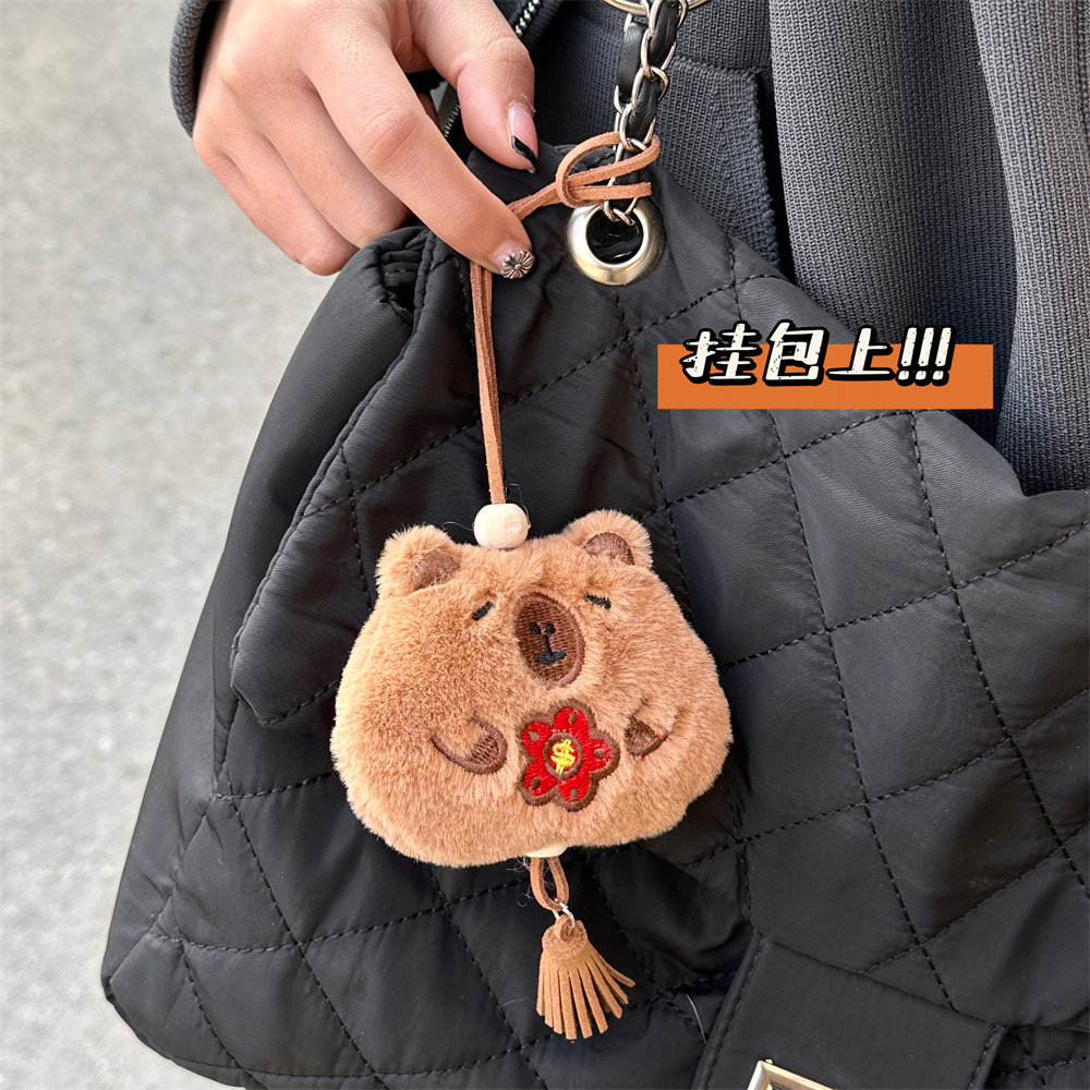 New rich flower plush capybara decorative pendant bag tassel ornaments cute doll doll keychain wholesale