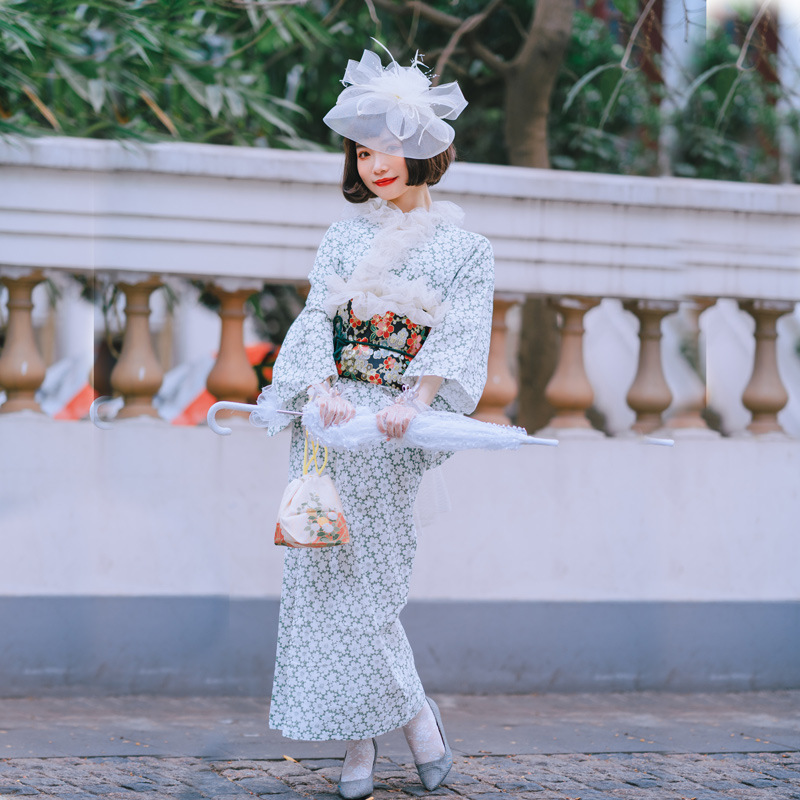 | nameOriginal | New Romain Style Lace Japanese Kimono Stereo Printed Pure Cotton Single Layer Small Pattern Improved 140 Length |