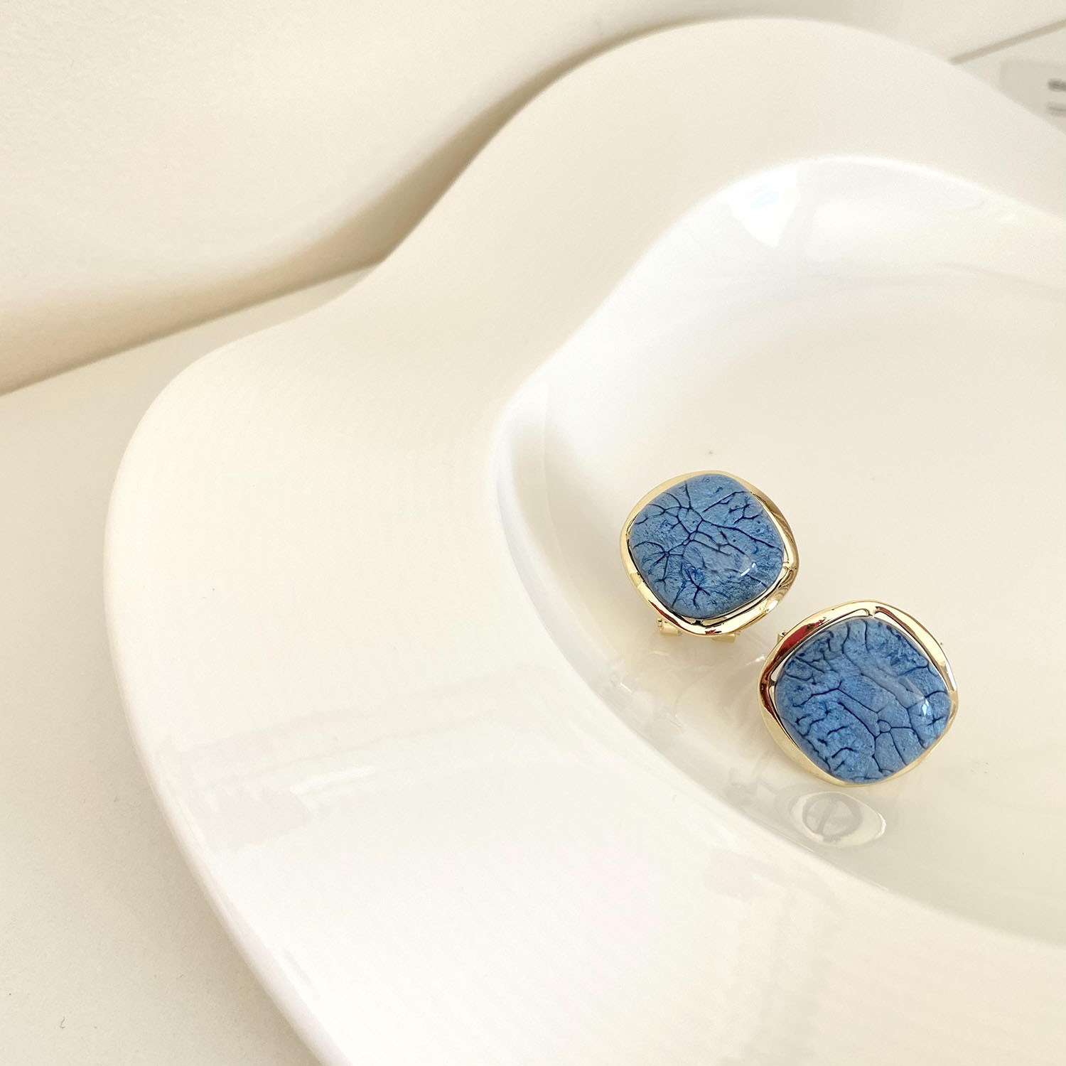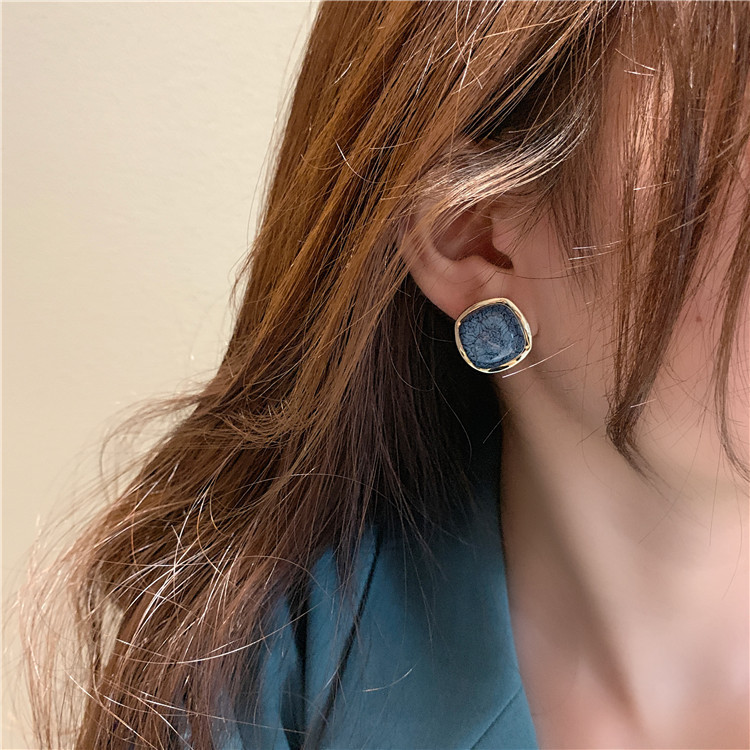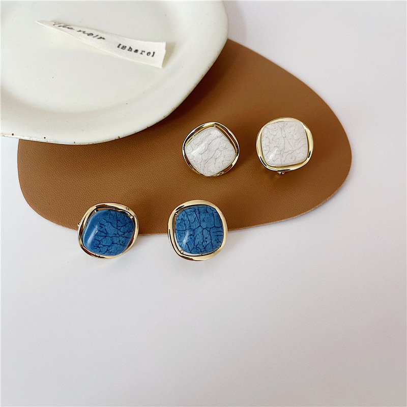 New S925 Silver Needle Marble Crack Metal Ear Clip Korean Compact Elegant Simple Cold Style Square Earrings