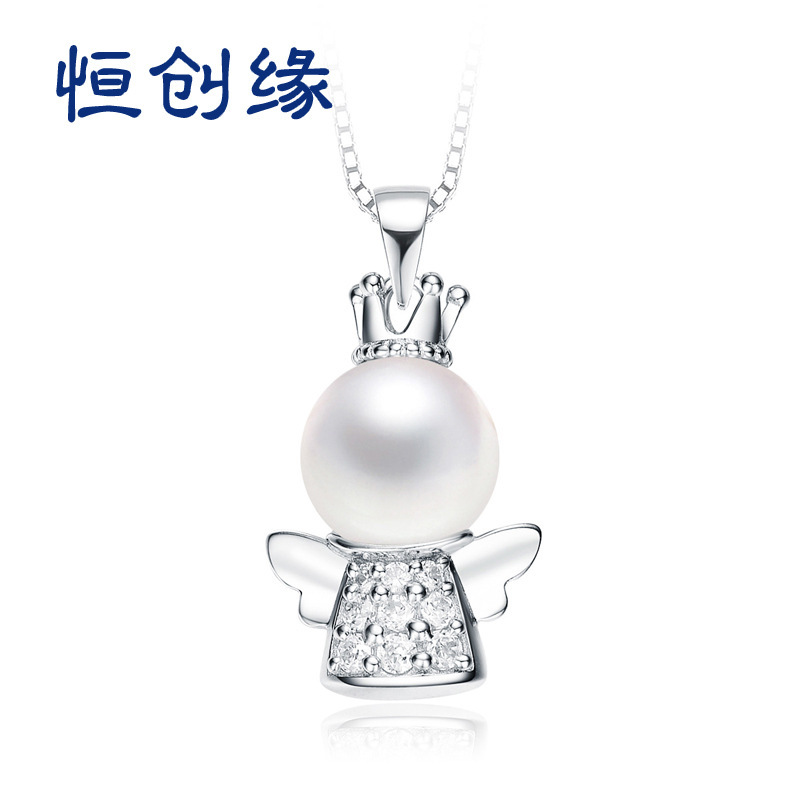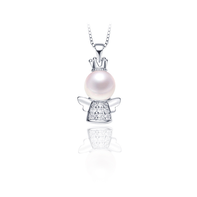 New S925 Sterling Silver Angel Freshwater Bead Necklace Niche Fashion Light Luxury Creative Design Pendant Women