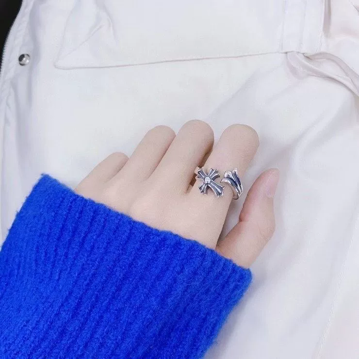 The new S925 sterling silver fashion male and female women’s rings of personalized retro classic punk cross opening ring