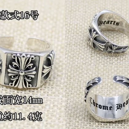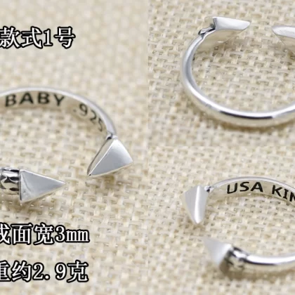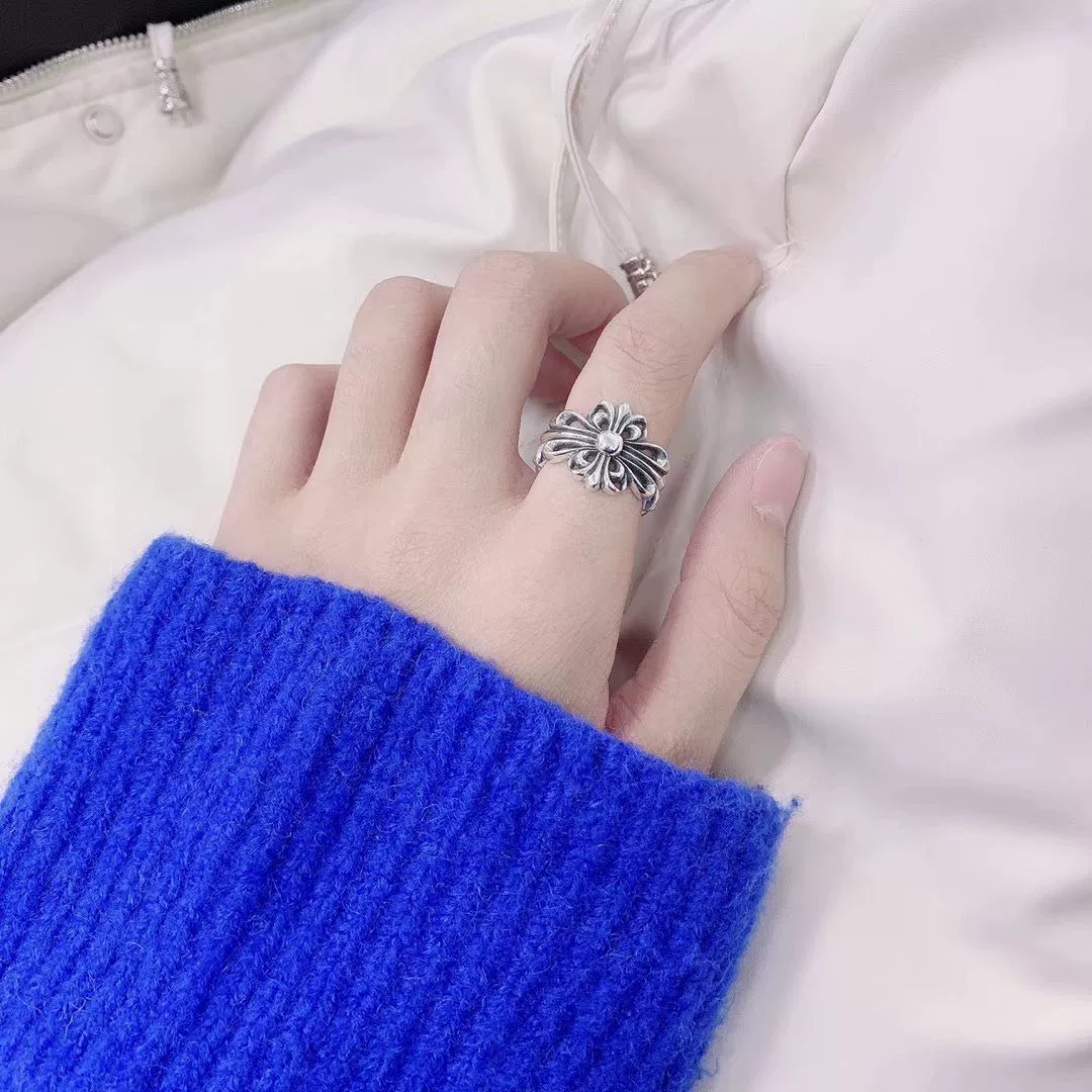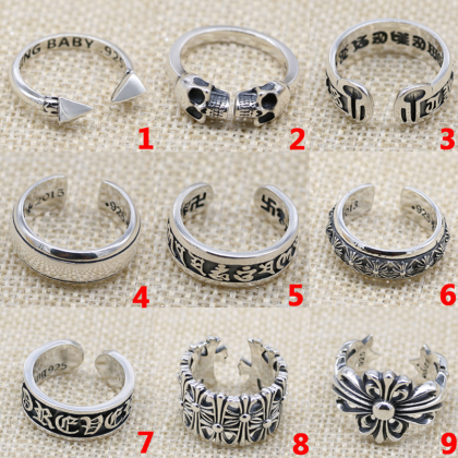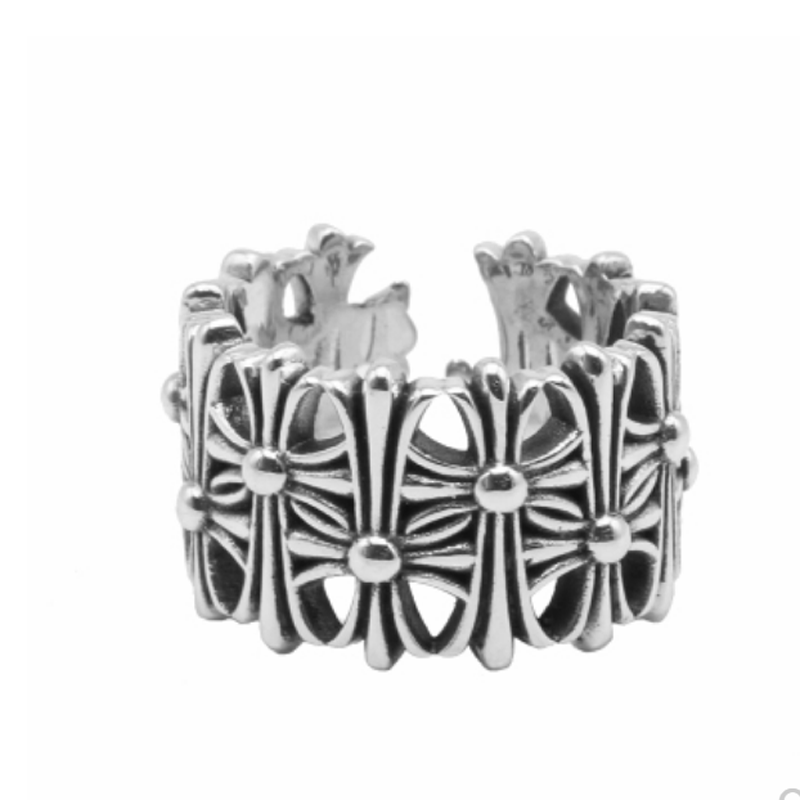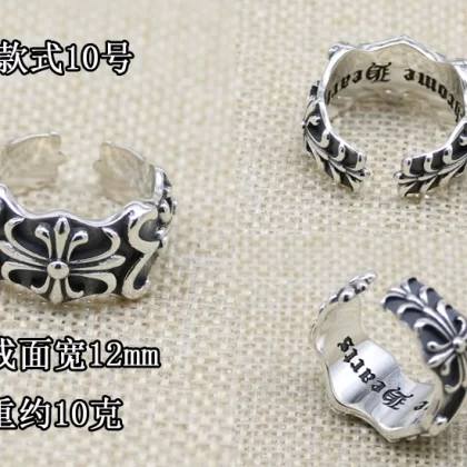 The new S925 sterling silver fashion male and female women’s rings of personalized retro classic punk cross opening ring