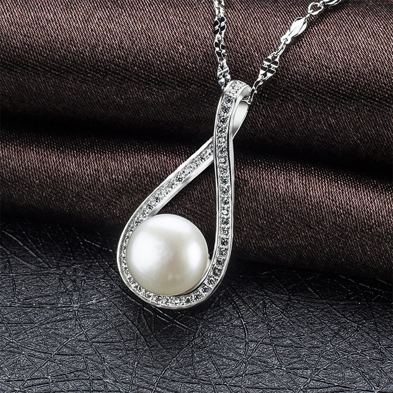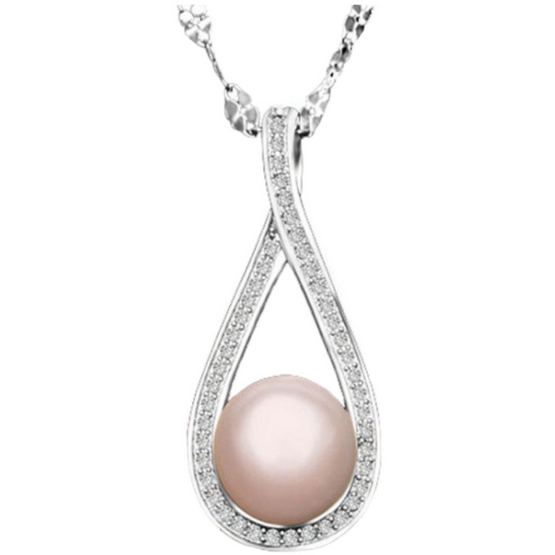 New S925 sterling silver micro-inlaid drop-shaped pearl pendant fashionable light luxury design pendant Valentine's Day gift for women