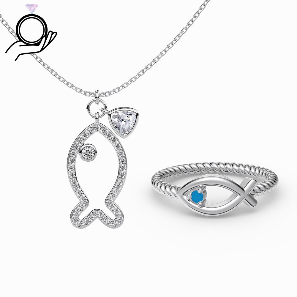 New S925 Sterling Silver Necklace Ring Women’s High-end Small Fish Style Light Luxury Exquisite Summer Fresh Jewelry for Women