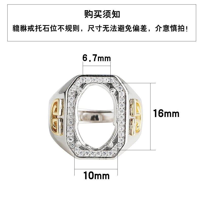| nameOriginal | New s925 sterling silver ring empty support diy inlaid jade jade Pixiu gemstone ring face men and women ring support 10*16 |