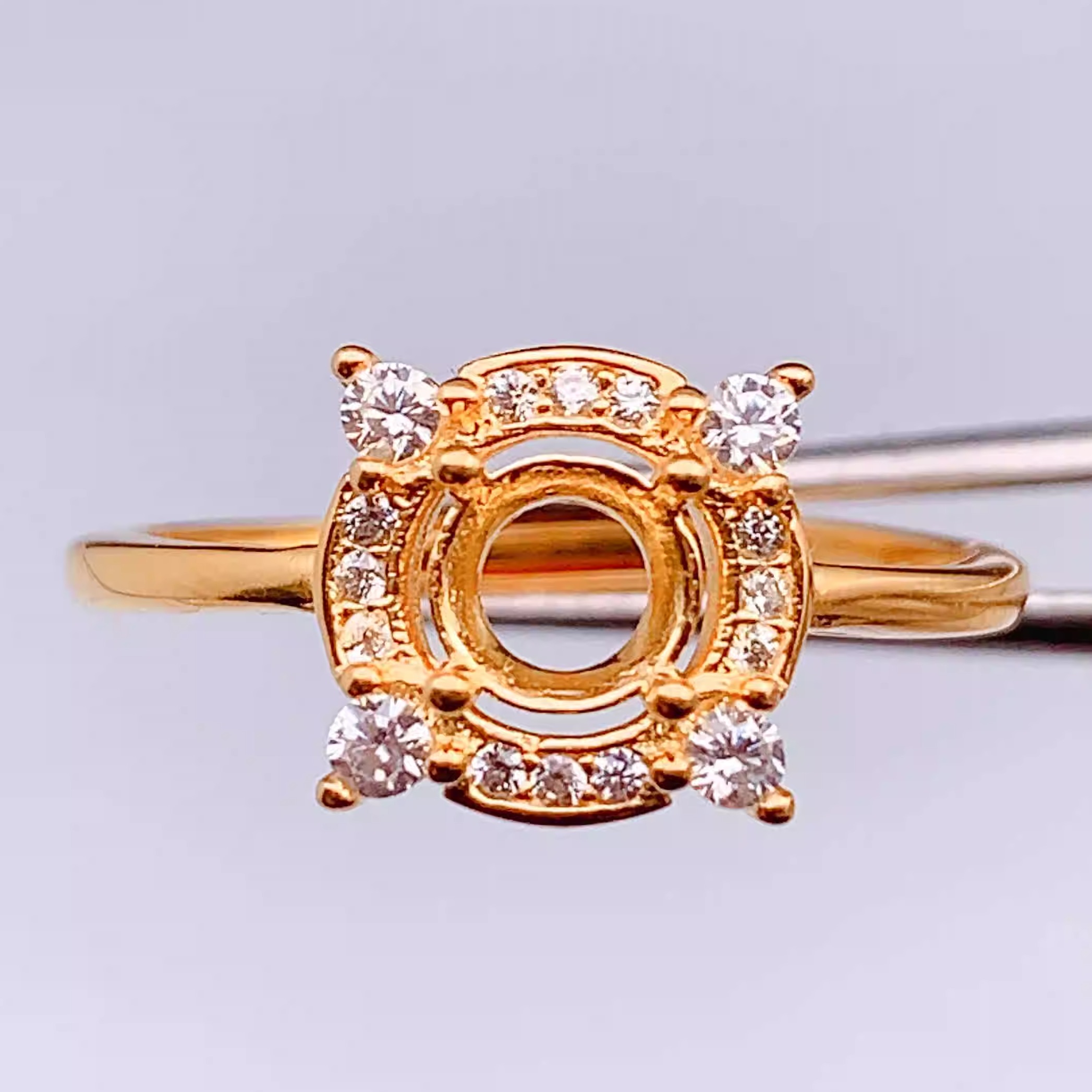 New s925 sterling silver ring empty support ring versatile and fresh design inlaid round 5 color jewelry DIY
