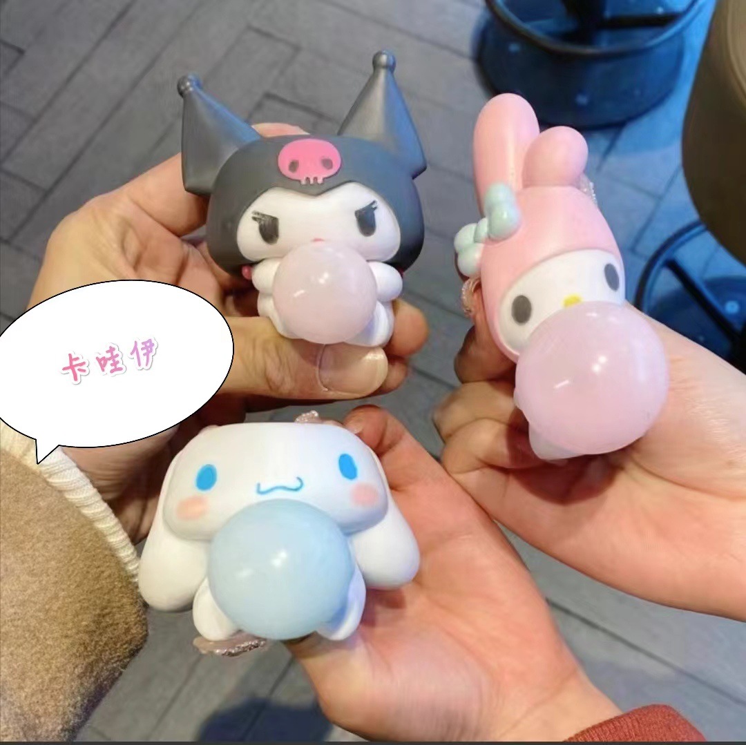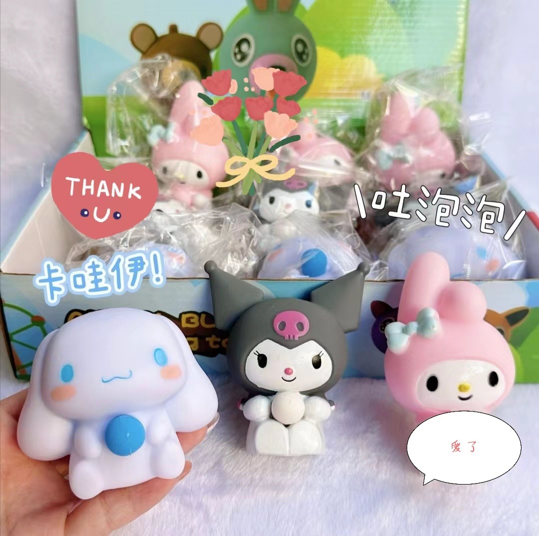 New Sanrio Puff Bubble Cool Lomi Meruti Yugui Dog Blowing Bubble Decompression Toy Soft Glue Pinch Music