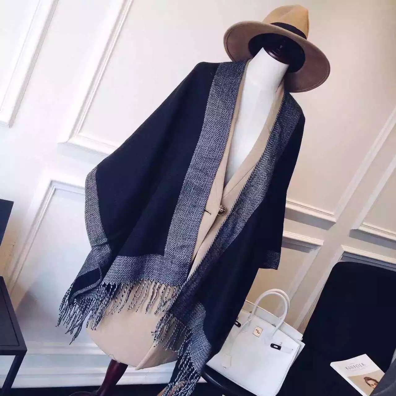 New Scarf Autumn and Winter Wear Scarf Women's Grey Black Double-sided Large Cotton Velvet Scarf Shawl Women's Warm Scarf for Hair