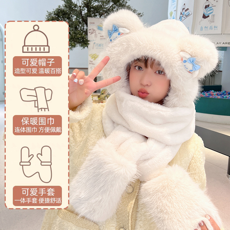 New scarf hat gloves one-piece warm three-piece set autumn and winter cute bear plush suit cap earmuffs cap