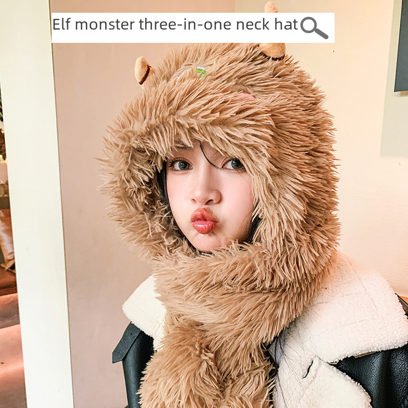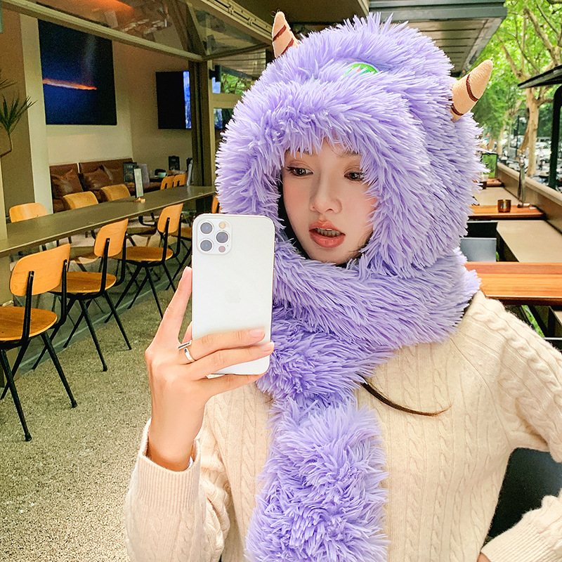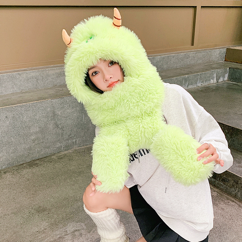 | nameOriginal | New scarf hat one-piece women's thickened cartoon monster three-piece set warm winter scarf student ear protection hat fashion |