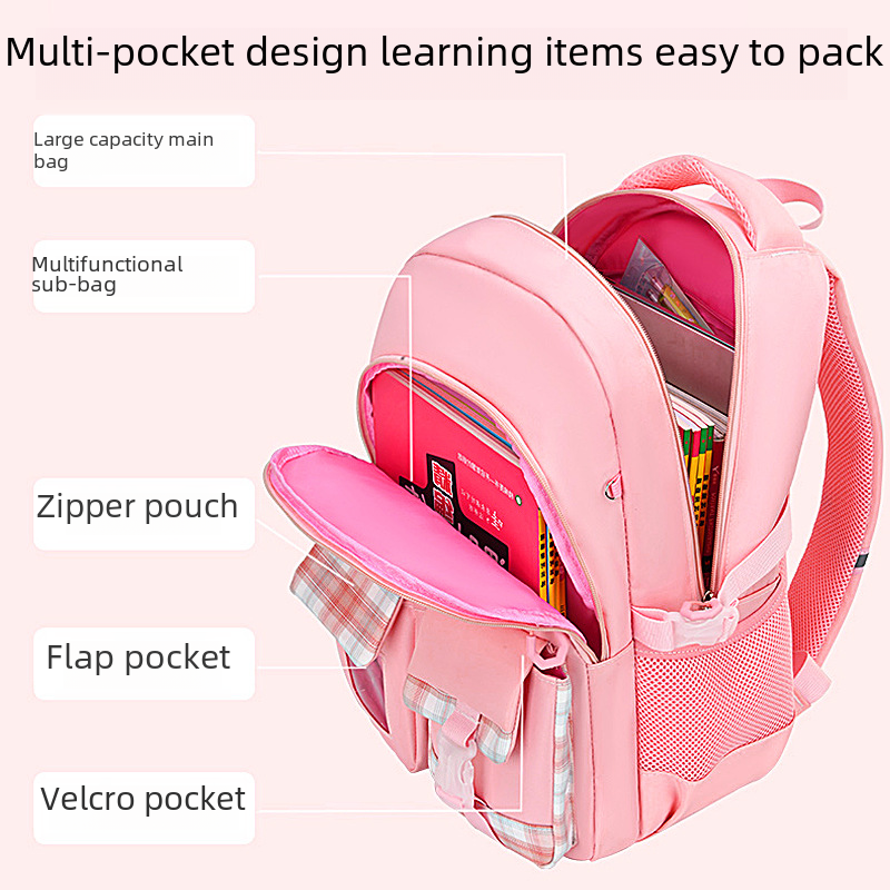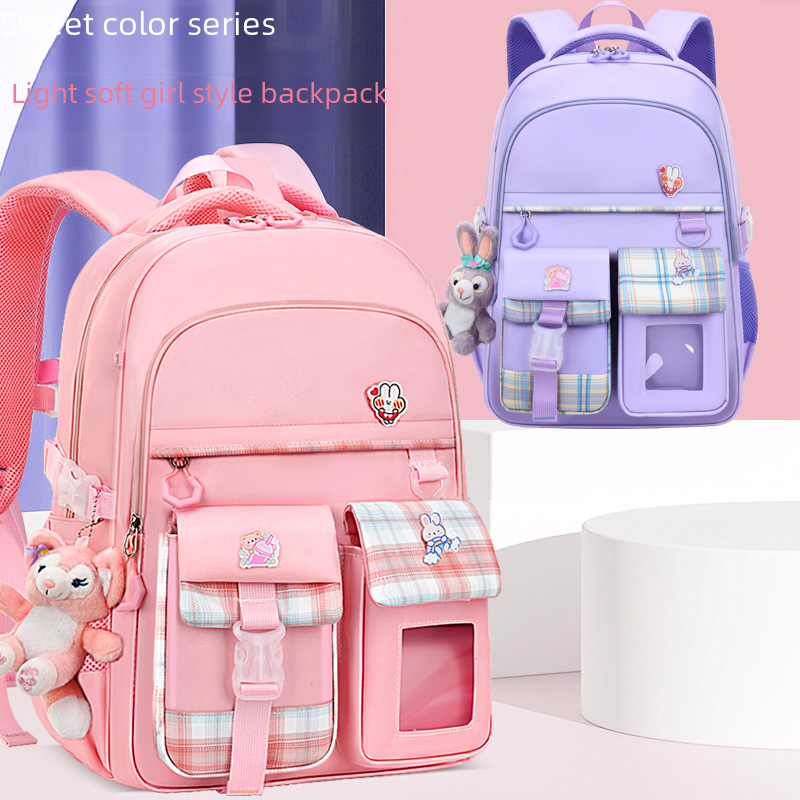 New schoolbag for girls, primary school students, four or five girls, three to six burden reduction, spine protection, first grade girls, ultra-light defecation children