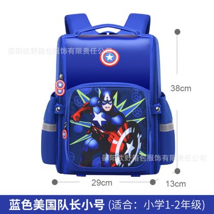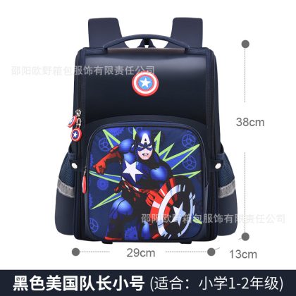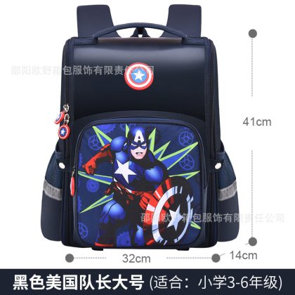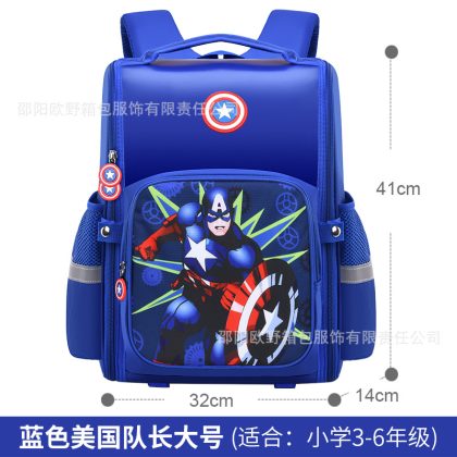 New Schoolbag for Primary School Students Boys Cartoon Bag Full Open One-piece Backpack Ridge Protector Spiderman Captain America