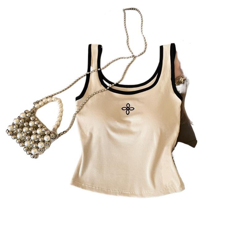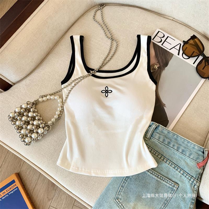 New Season Pure Desire Style Short Top with Spice Girl Small Embroidered Chest Pad with Square Collar Camisole Vest Women's Summer Collision CD