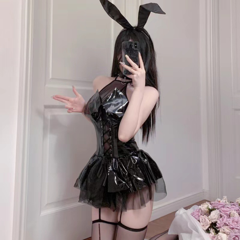 | nameOriginal | New sexy lingerie glossy PU halter strap bat little devil perspective short skirt suit halter strap sm |