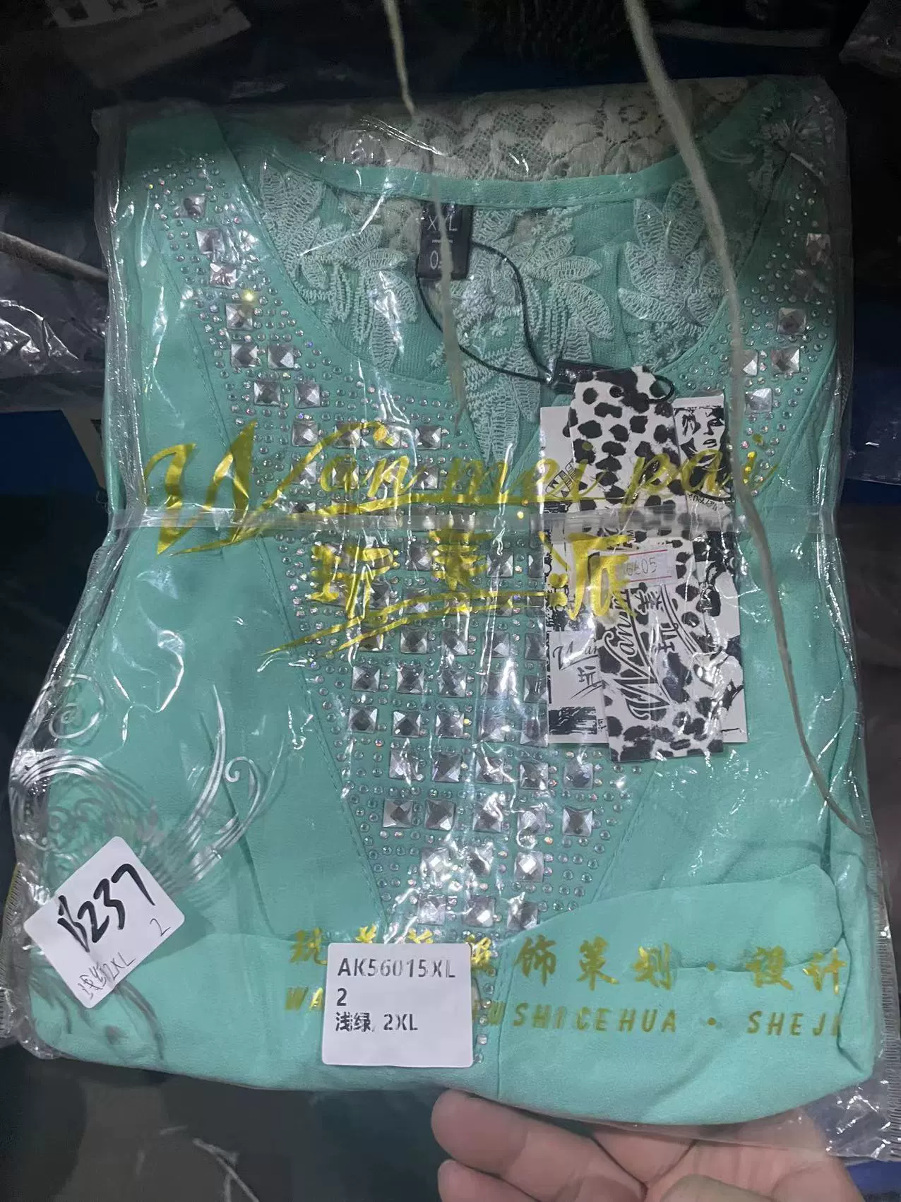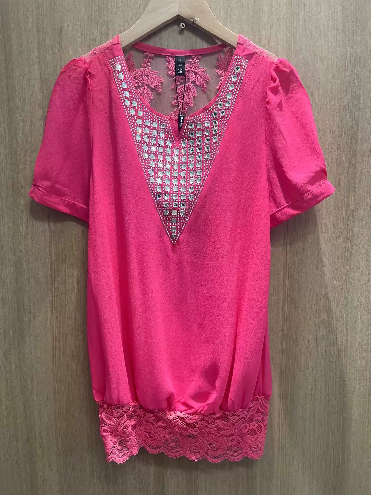 | nameOriginal | New short-sleeved chiffon shirt for women V-neck lace beautiful back solid color sexy hollow foreign style mesh breathable temperament studs |