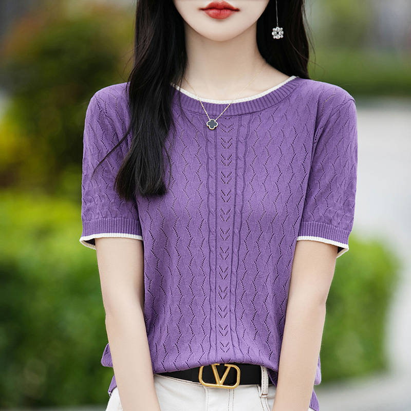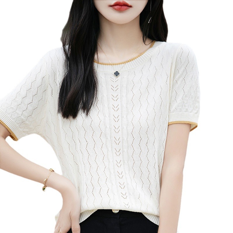 | nameOriginal | New Short-sleeved T-shirt Women's Loose Korean-style plus size Color Matching Hollow-out Top All-match Round Neck Fashionable Base Sweater |