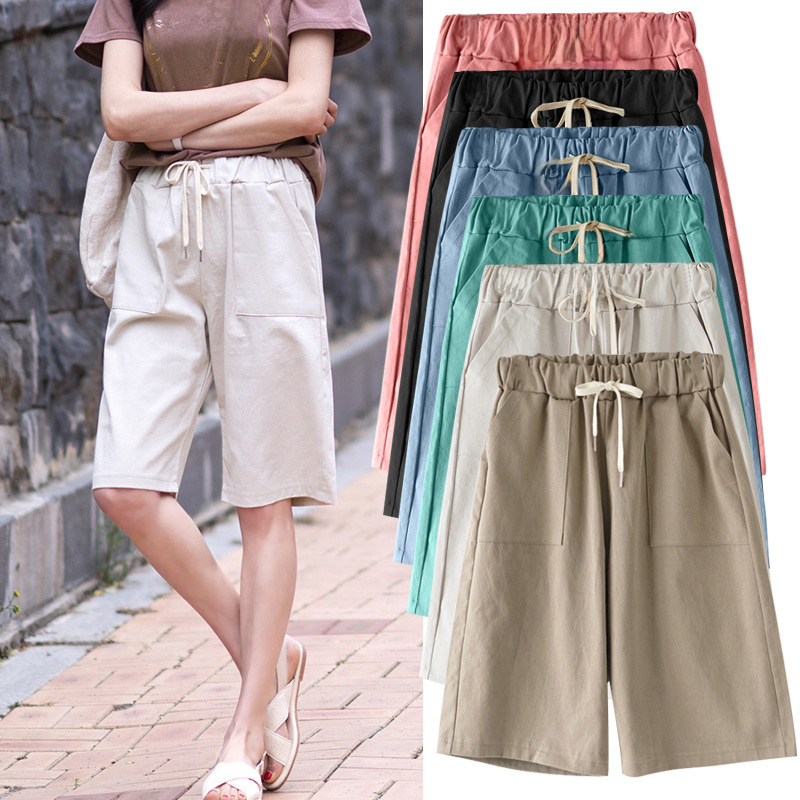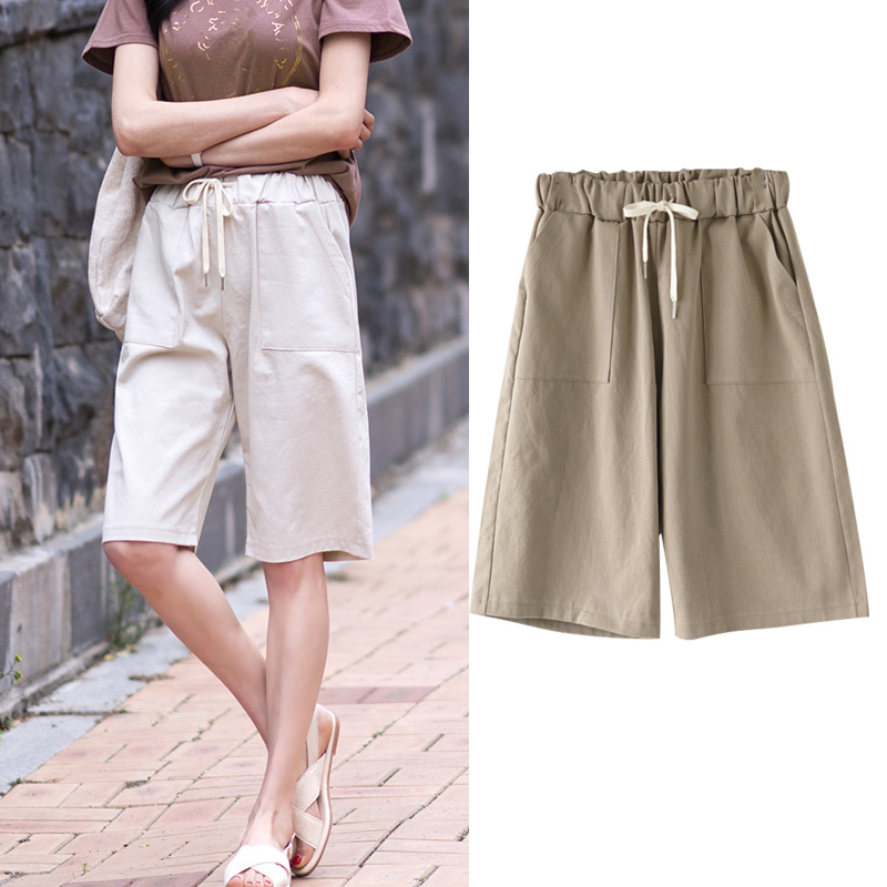 New Shorts Women’s Summer Thin High Waist Wide Leg 200 Jin Casual Middle Pants Straight Large Size Stretch Waist Five-point Pants for Women