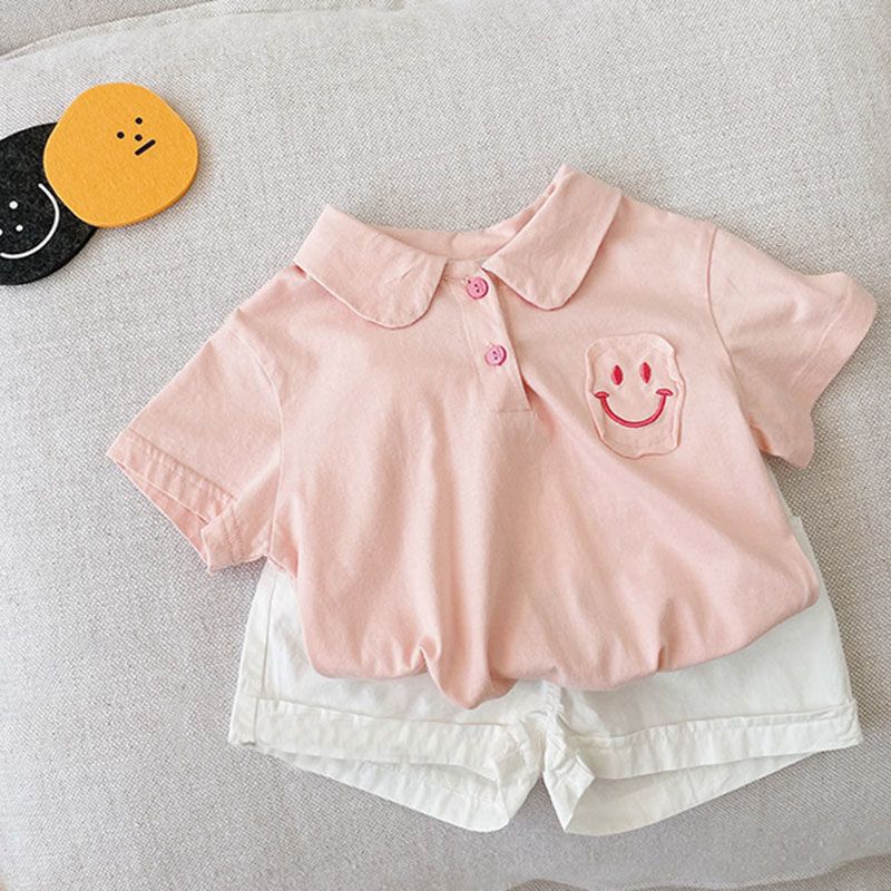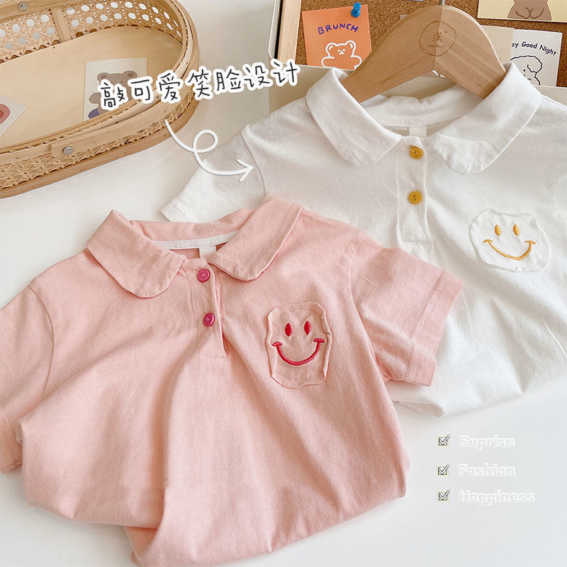 | nameOriginal | New simple all-matching ~ solid color smiley face children's polo shirt boys and girls summer thin baby lapel cotton short sleeve t-shirt |