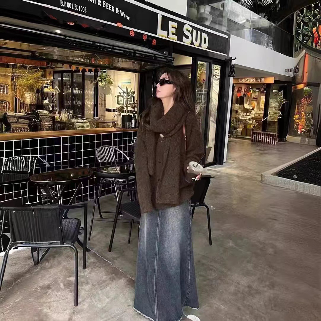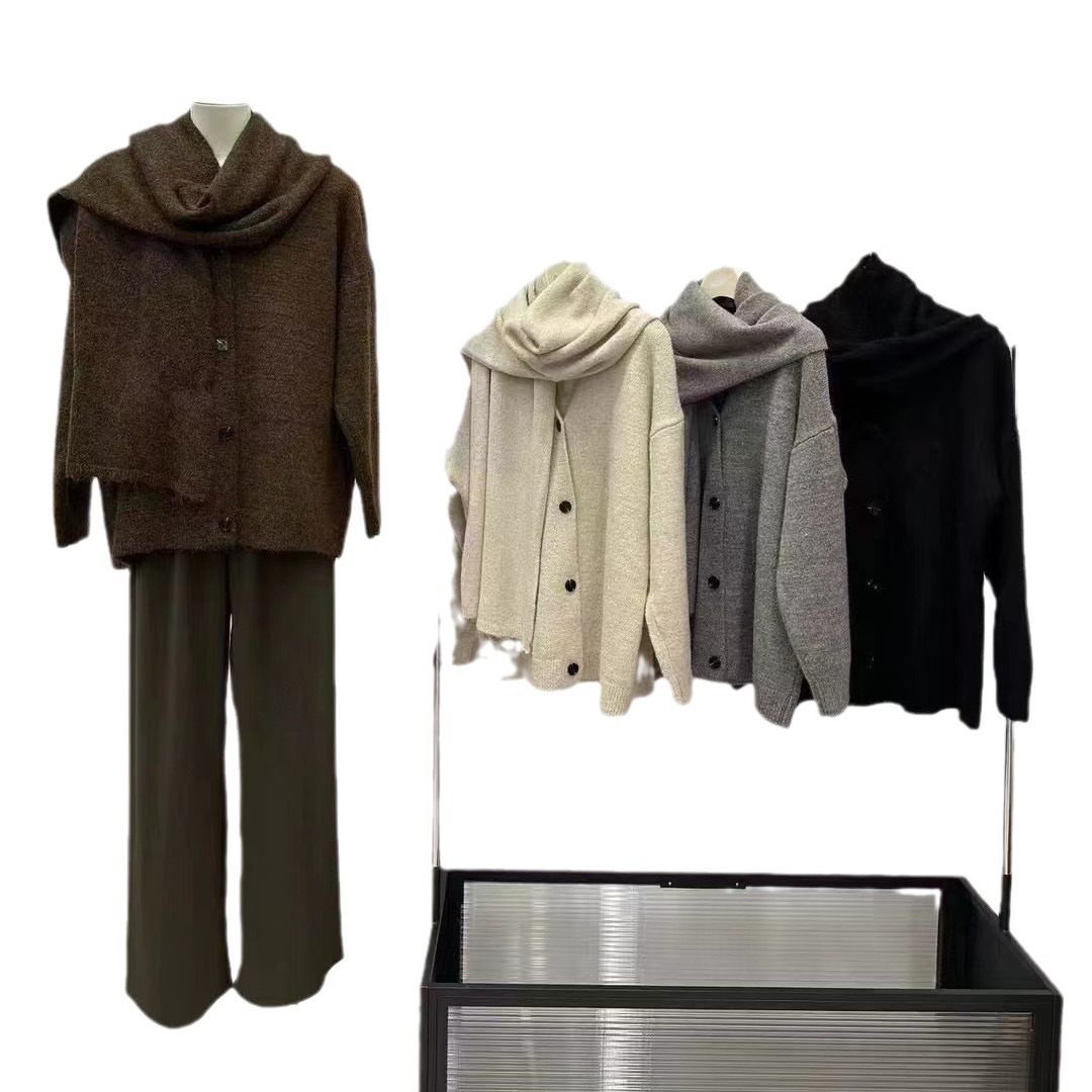 | nameOriginal | New Slack Wearing Lazy Style Scarf Knitted Cardigan Korean Style All-match Simple High-end Sweater Jacket |