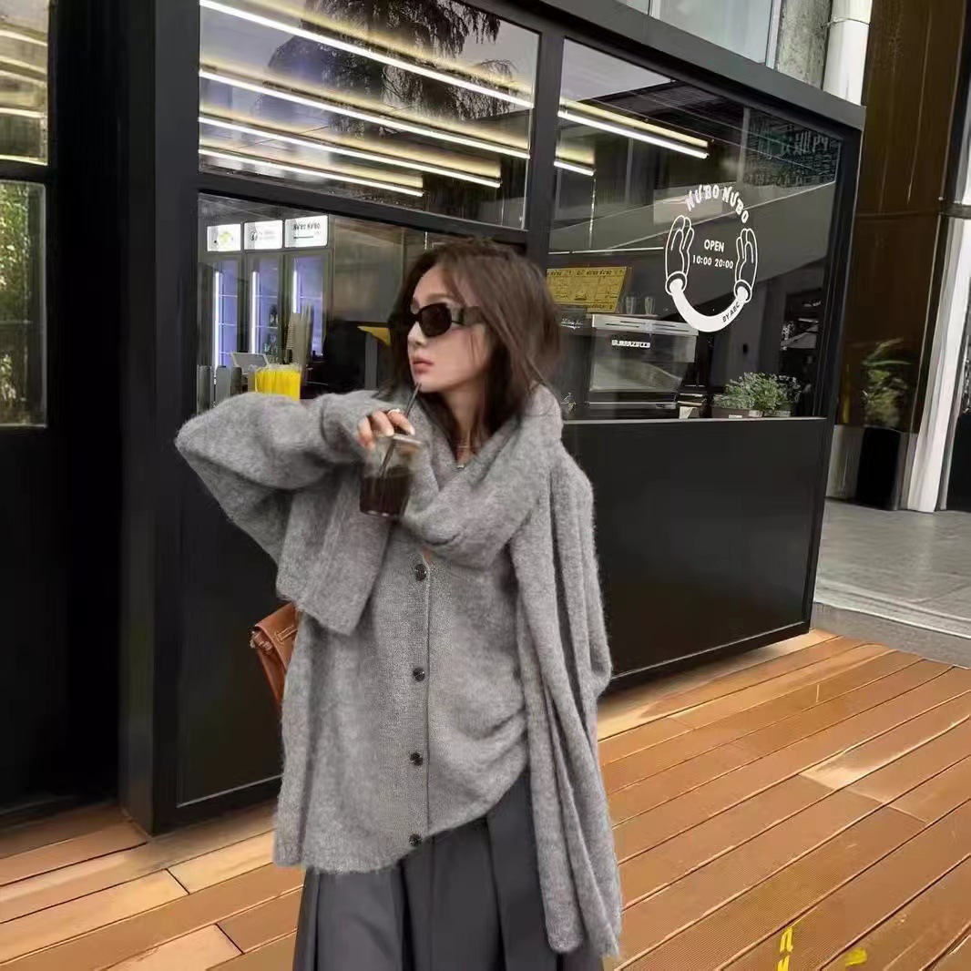 | nameOriginal | New Slack Wearing Lazy Style Scarf Knitted Cardigan Korean Style All-match Simple High-end Sweater Jacket |