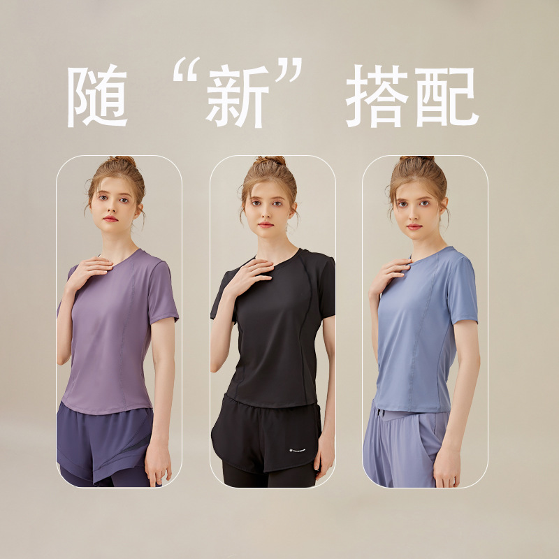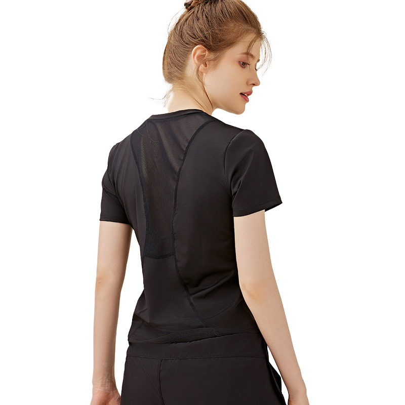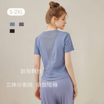 New Sports T-shirt Women's Back Mesh Sports Top Short-sleeved Breathable Patchwork Gauze Thin Yoga Wear Short-sleeved