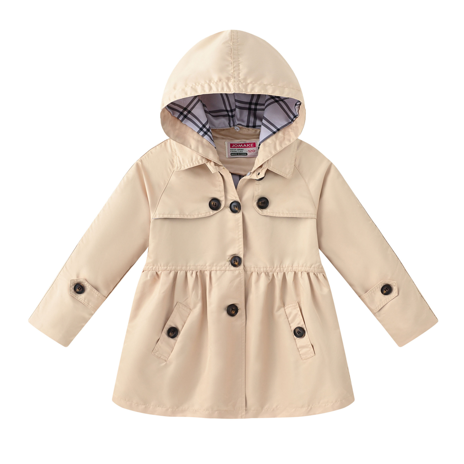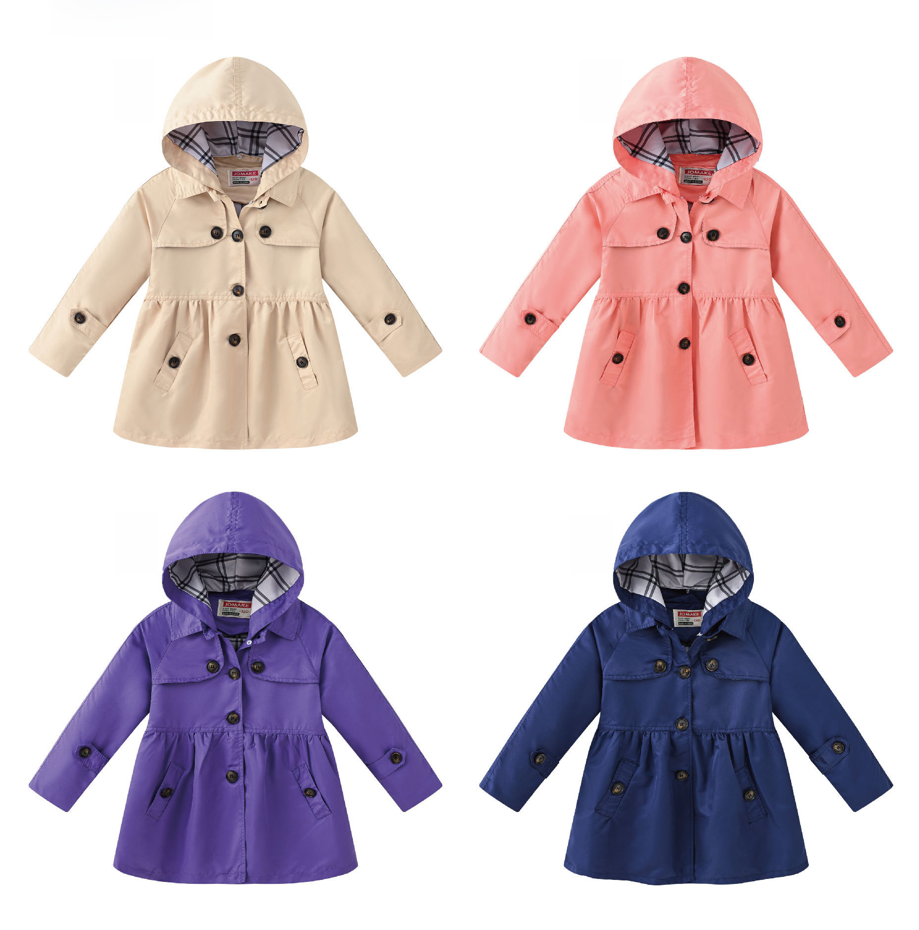 | nameOriginal | New Spring and Autumn Girls' Solid Color Button Coat with Hood Casual Tight Waist Korean Style Mid-Big Children Classic Coat |