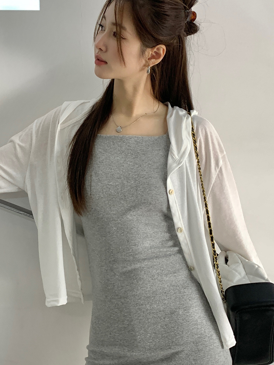 New Spring and Summer New Button Knitted Sweater Women’s Loose All-match Slub Cotton Cardigan Outer Wear Long Sleeve Sunscreen Hood Empty