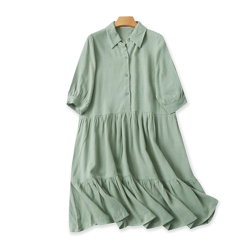 | nameOriginal | New Spring and Summer Pullover Button Breathable Cotton and Linen Dress |
