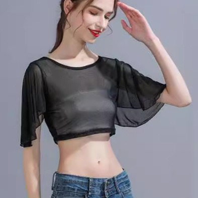 | nameOriginal | New Spring and Summer Short-sleeved Shawl Fairy Ultra-thin Perspective Mesh T-shirt Round Neck Half Bat Flying Top New Women's Wear |