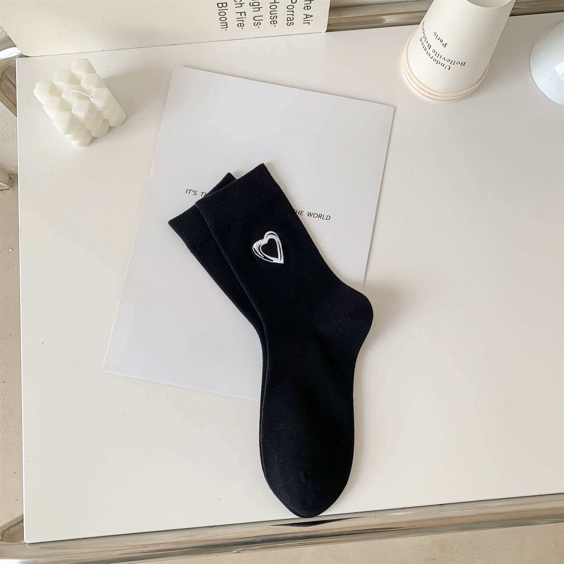 | nameOriginal | New spring and summer socks, women's socks, black and white embroidered love, personalized one-piece boneless suture ins trendy tube socks |