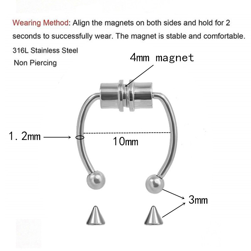 New stainless steel non-perforated nose decoration foreign trade nose ring reinforced magnetic fake nose ring titanium steel horseshoe shaped magnet nose ring