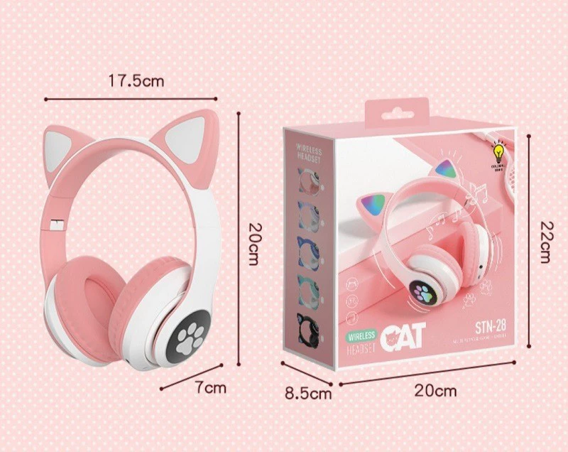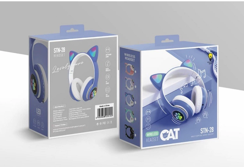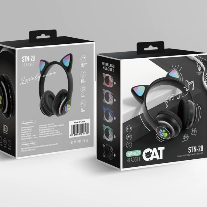New STN-28 Cat Ear Head-mounted Bluetooth Headset Flashing and Glowing 5.0 Wireless Sports and Leisure Plug-in Card Folding