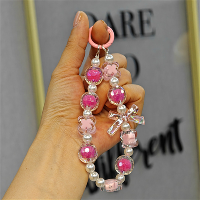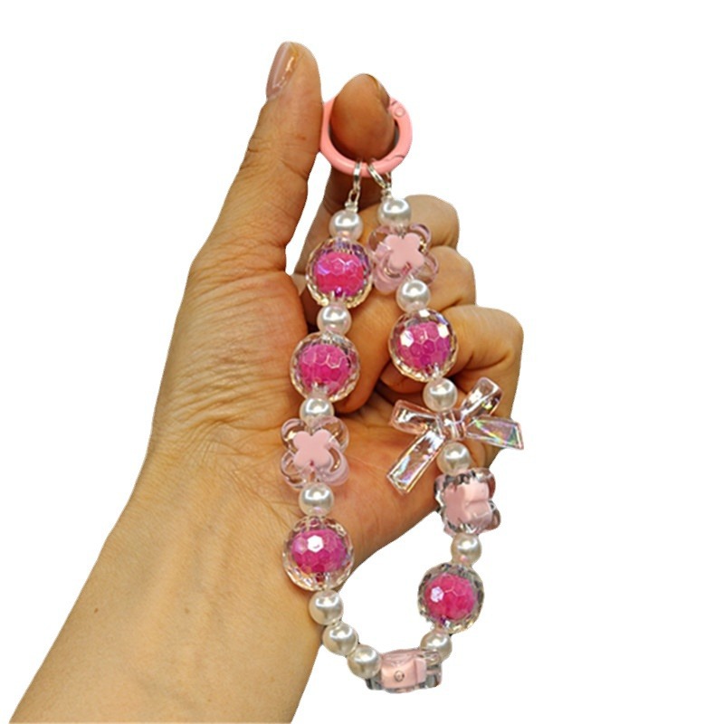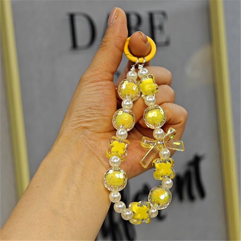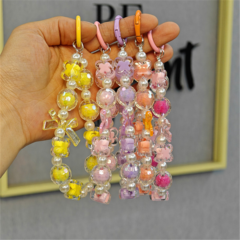 New style beaded bow chain key chain pendant cute beaded four-leaf clover mobile phone chain luggage hand chain